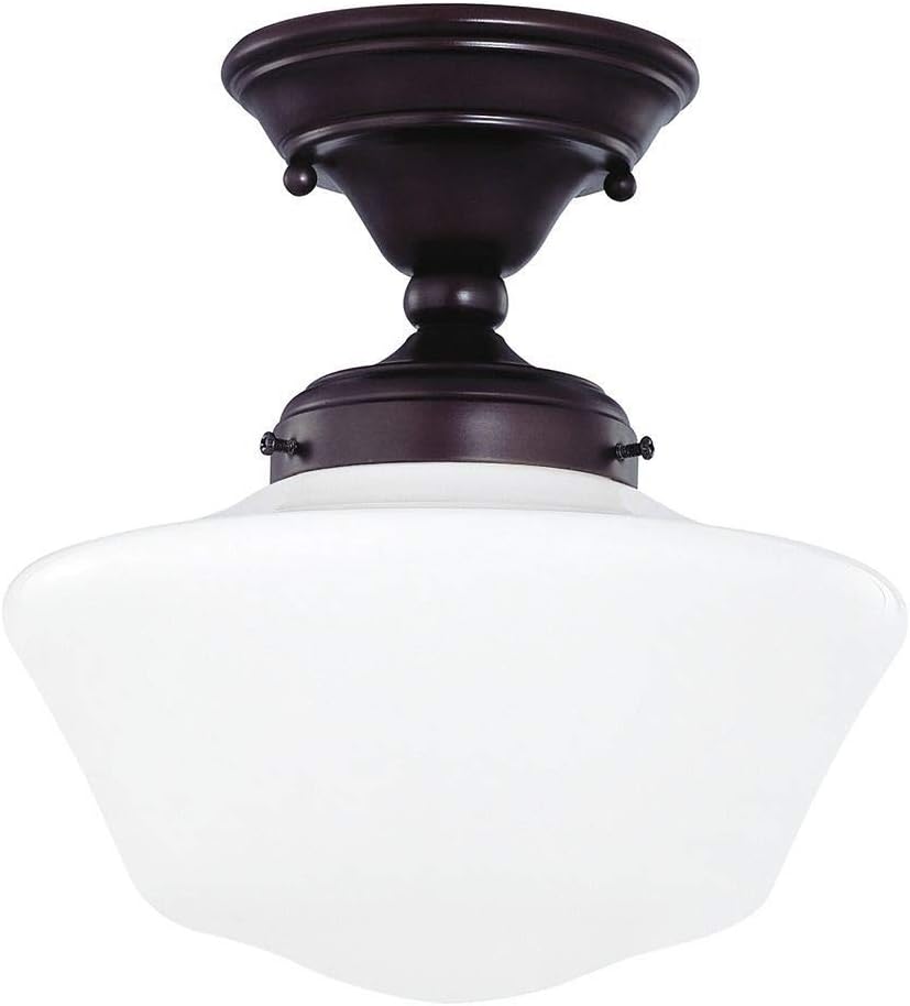 10-Inch Chrome Schoolhouse Semi-Flush Ceiling Light Polished chrome finish semi-flushmount light with Powellhurst schoolhouse opal white glass. Takes one 100-watt medium base frosted light bulb (not included). Suitable for installation in dry and damp locations. 120 volts line voltage. UL / CUL certified. 10.62 in x 10 in. Design Classics 10-Inch Chrome Schoolhouse Semi-Flush Ceiling Light - White Steel Fixture - 10.62 in X 10 In.