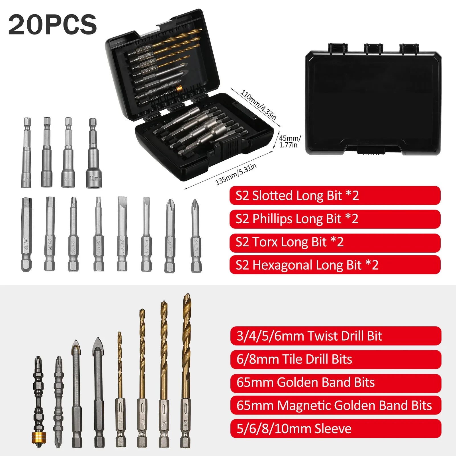 This drill bit set and screwdriver bit set all come with a plastic box for storage and organization. Its a great ideal for appliances, computers, fixtures and electronic gadgets ,all home and workshop DIY.