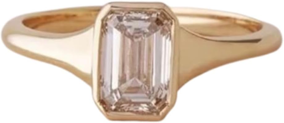 Elevate your style with this exquisite 2 Ct emerald cut cz diamond bezel set solitaire ring. Crafted with meticulous attention to detail, this timeless piece features a stunning emerald cut cz diamond that radiates brilliance and elegance. The cz diamond is securely set in a bezel setting, showcasing its facets and fire from every angle. Handmade with 925 sterling silver and plated with 14K gold, this ring offers a luxurious and durable design. Whether you're seeking an engagement ring or a statement accessory, this gorgeous solitaire ring is a perfect choice. Its delicate and feminine silhouette makes it a versatile addition to any jewelry collection. Treat yourself or someone special to this magnificent ring and experience the joy of owning a true masterpiece.