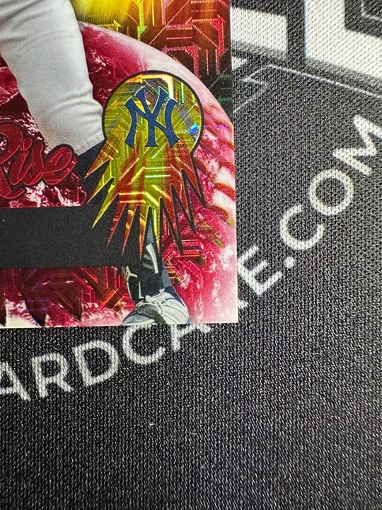 The product is a 2025 Bowman Chrome AARON JUDGE Meteoric Rise Red Mojo Refractor trading card, featuring a limited print run of /5. This baseball card is part of the MLB World Series set and showcases the New York Yankees player in English language. Made of card stock with a thickness of 35 Pt., this original sports trading card is a highly sought-after collectible for fans of Major League Baseball. This is a Mojo Refractor number 4 out of 5 (4/5)