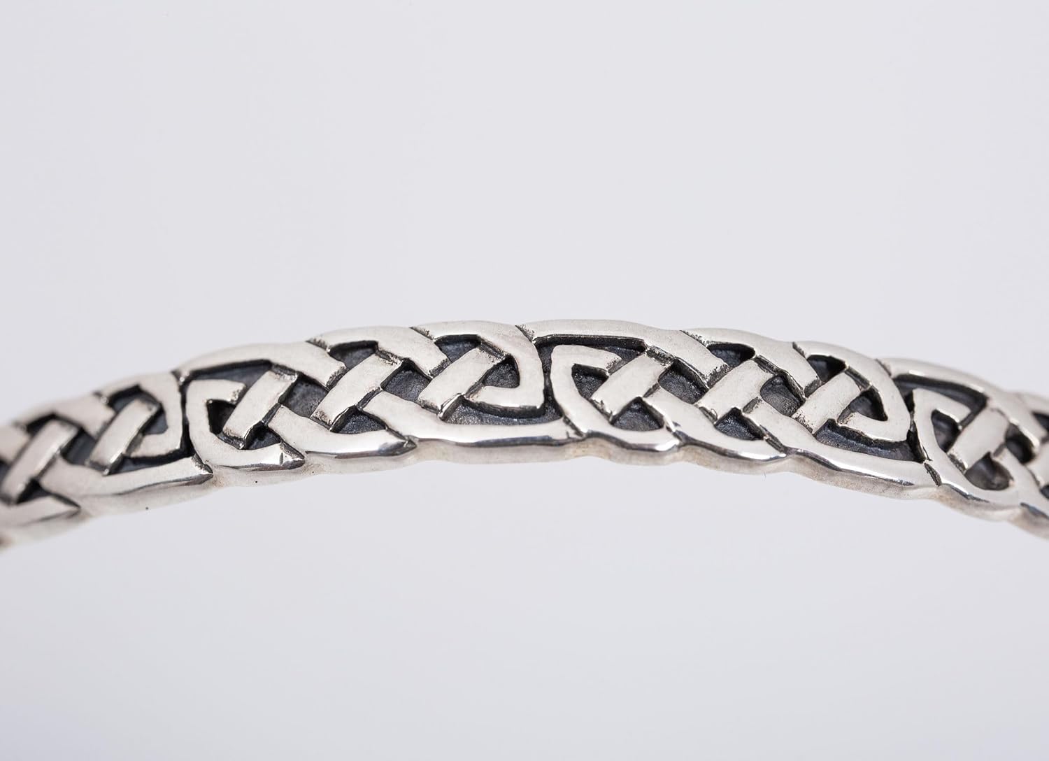 This dainty Celtic Knotwork Silver Bangle bracelet celebrates Celtic tradition through an elegant design. The bracelet is small and delicate and features an intricate Celtic Knotwork design. The Celtic Knot is a mesmerizing symbol that has been depicted in Celtic art for centuries, and it still captures people's imaginations to this day thanks to its historical and artistic importance. The bracelet is made of sterling silver which is on the same level as more expensive precious metals regarding finesse. Sterling silver is a very practical and durable metal. When properly taken care of, sterling silver jewelry can last a lifetime, which makes it a very attractive option for those who want good value for their money.
