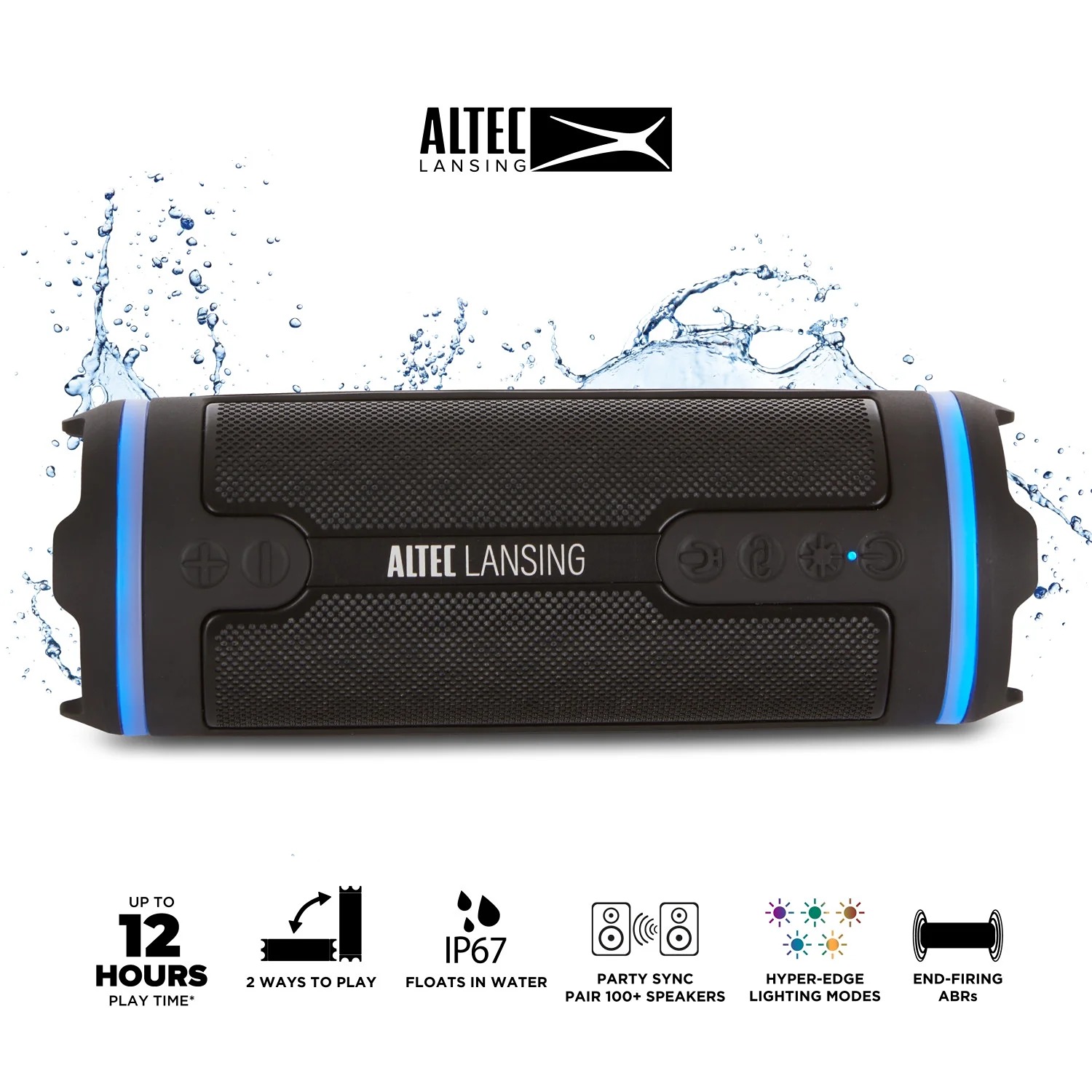 The HydraMotion 2.0 EverythingProof™ wireless speaker is packed with versatile features and offers powerful sound. With up to 12 hours of battery life, included speaker mount and carry strap, take your music anywhere! The HydraMotion 2.0 can handle the conditions of any adventure with its IP67 EverythingProof™ rating. Enhance your audio experience with HyperEdge LED light modes to brighten your sound. The HydraMotion 2.0 offers 2 Ways to Play as you can orient your speaker vertically or horizontally. Increase your sound with the Party Sync feature that allows you to pair 100+ HydraMotion 2.0s together. The party just got better with Altec Lansing!