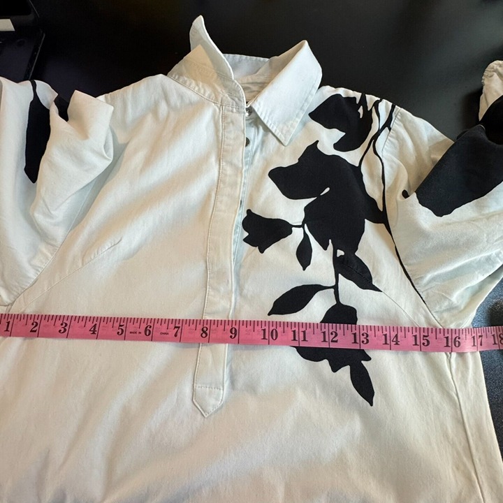 This is a stylish black and white floral long dress by Maeve in size XS. It features long sleeves and a maxi shirt dress style, perfect for various occasions like travel, weddings, parties, and work. Made of cotton, this dress is suitable for women looking for a versatile and elegant piece for their wardrobe. Lagenlook, Layered, Minimalist, Boho, Bohemian, Feminine, Breathable, Cotton