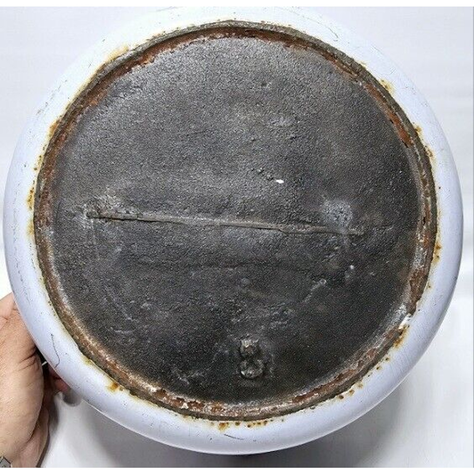 Antique Cast Iron #8 Enamel Porcelain Pot Cauldron Kettle Handle & Pour Spout Pale Blue