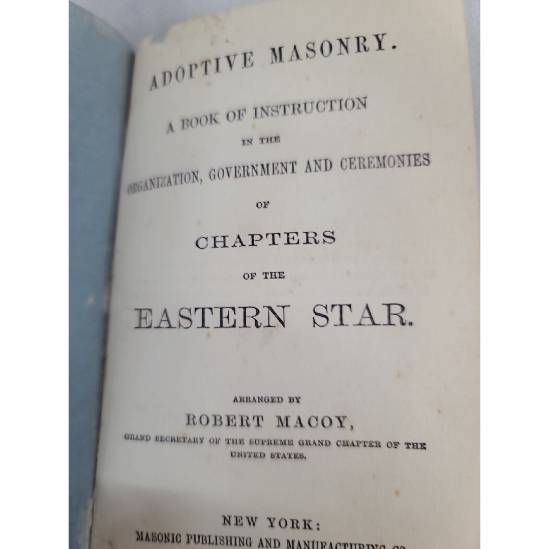 This rare 1st edition book titled "Adoptive Masonry: A book of Instruction in the Organization, Government and Ceremonies or Chapters of the Eastern Star" is a must-have for any Masonic enthusiast. Published by Masonic Publishing & Manufacturing Company in 1869, this 108-page paperback book is written in English and intended for adult readers.