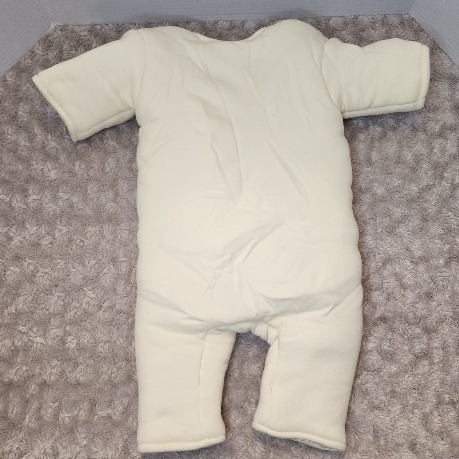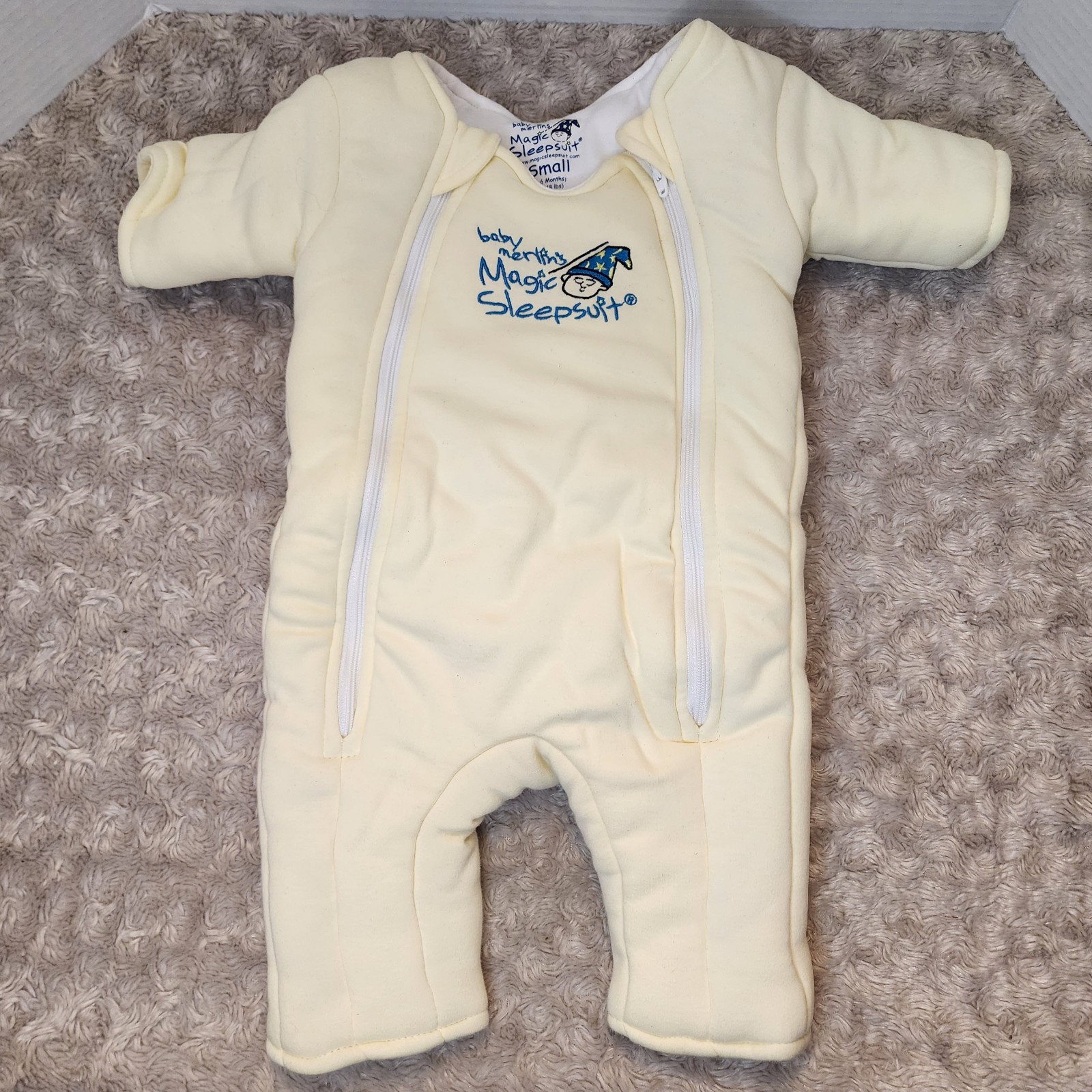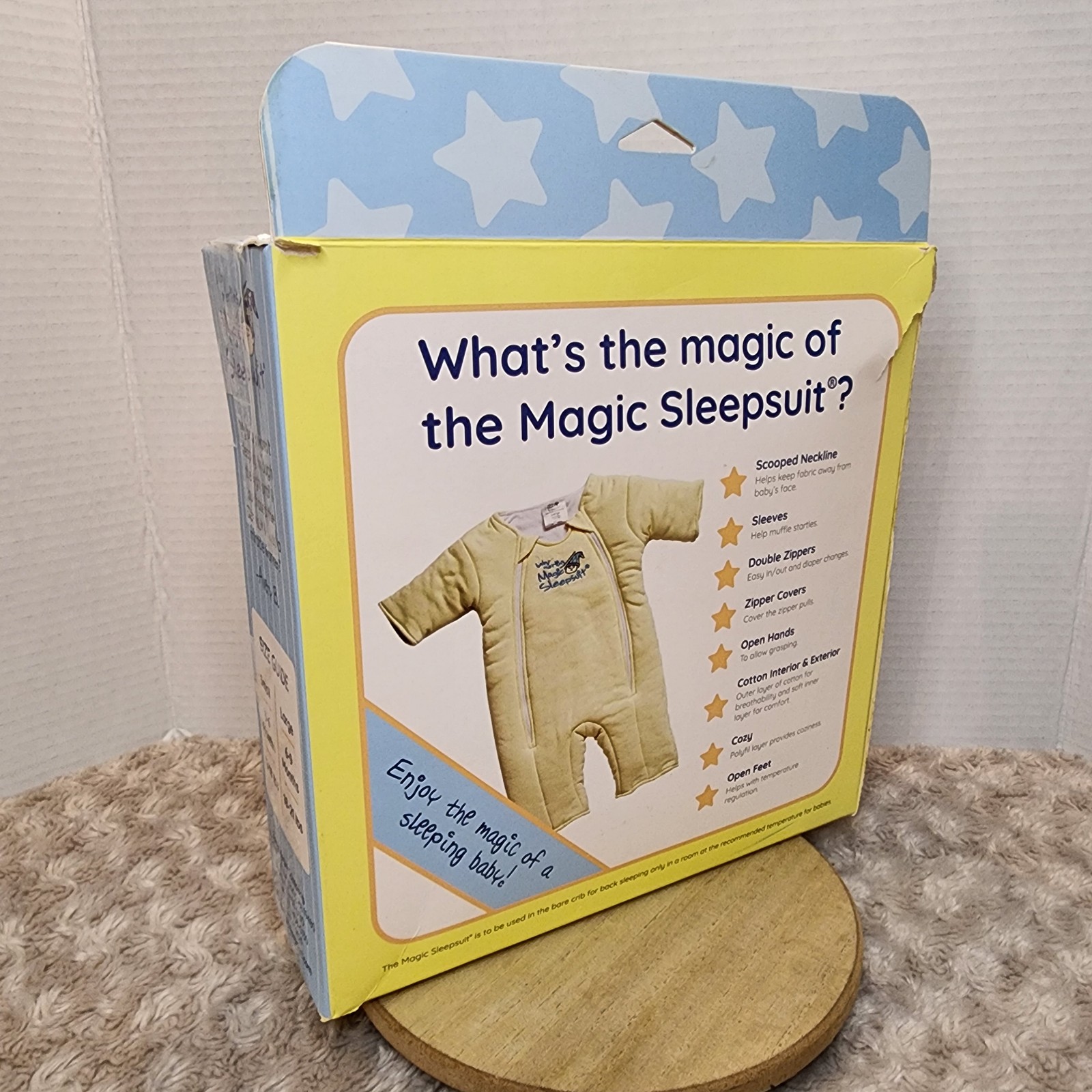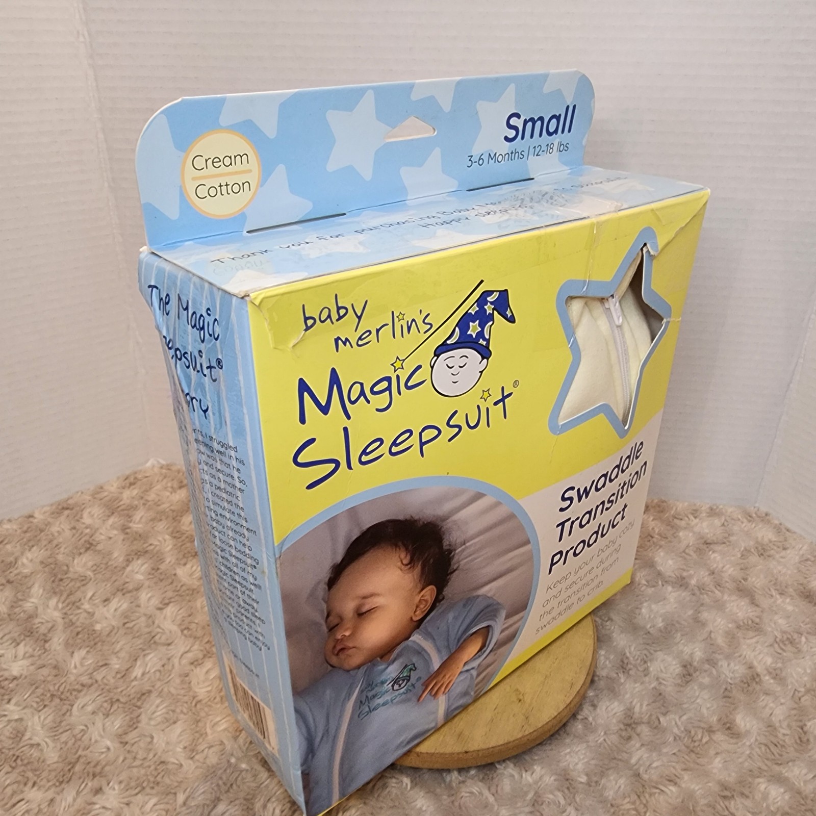 This listing is for one (1) Baby Merlin's Magic Sleepsuit Swaddle Transition in cream cotton. Size small 3-6 months / 12-18 pounds. Double Zipper for Easy Diaper Changes. This is brand new, only removed from the box for pictures. The box is not in "gift giving" condition and has been taped in several areas. (A1)