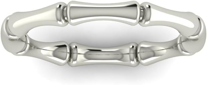 Add a touch of distinctive elegance to your jewelry collection with this sophisticated bamboo-style band ring. The ring features an artfully crafted design with segmented sections that create a natural, organic look reminiscent of bamboo joints. Available in three luxurious metal finishes - warm rose gold, classic yellow gold, and sleek sterling silver - this versatile piece complements any style. The smooth, polished surface catches light beautifully, while the unique bamboo-inspired pattern adds visual interest and texture. Each segment is carefully proportioned and connected to create a comfortable, everyday wear ring that sits gracefully on your finger. Perfect for stacking with other rings or wearing as a statement piece on its own, this band ring brings a contemporary twist to traditional jewelry design. The timeless appeal of this ring makes it an ideal choice for both casual and formal occasions, offering endless styling possibilities for the modern jewelry enthusiast.