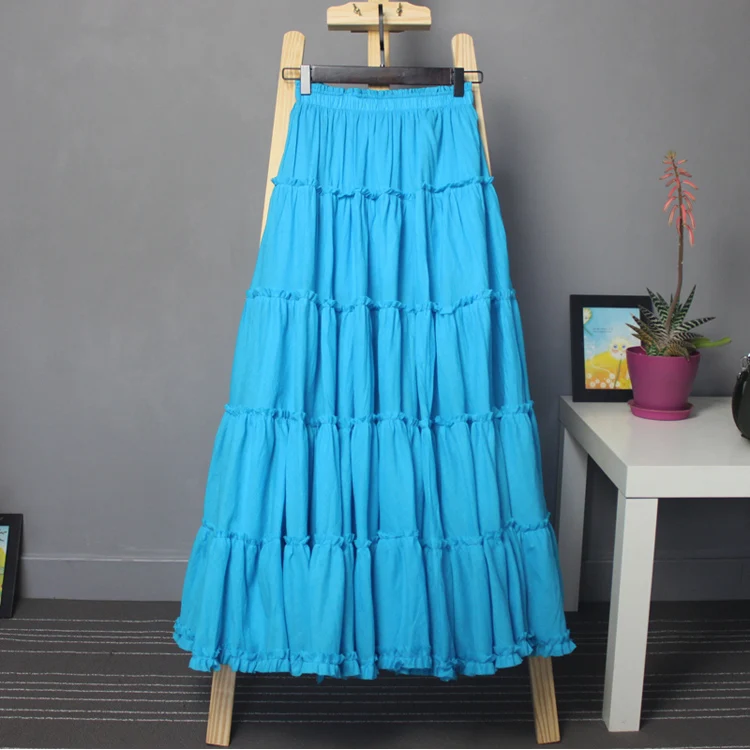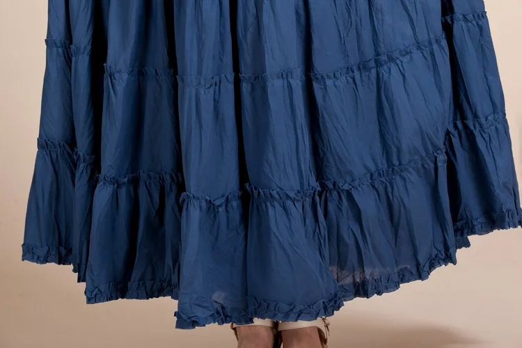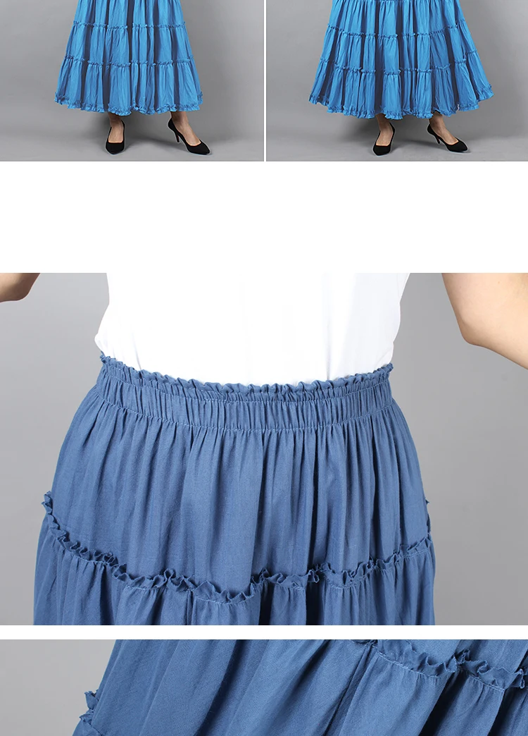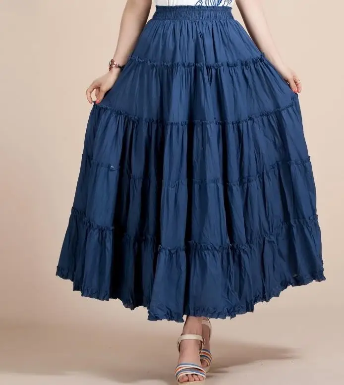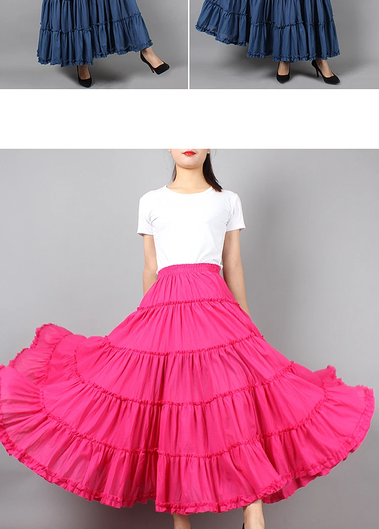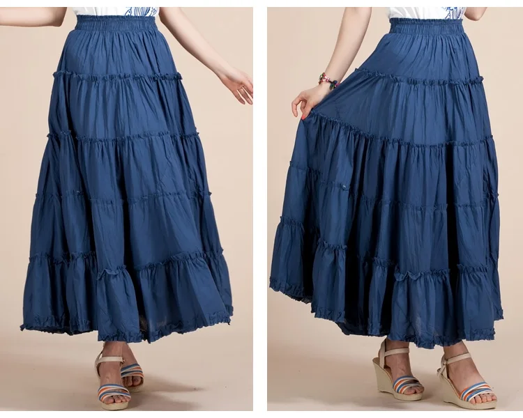 Boho Beach Midi Umbrella Long Skirts Summer Femininas Sundress Maxi Cotton Skirts Elastic Waist Pleated Spliced Patchwork Skirts