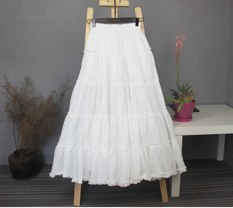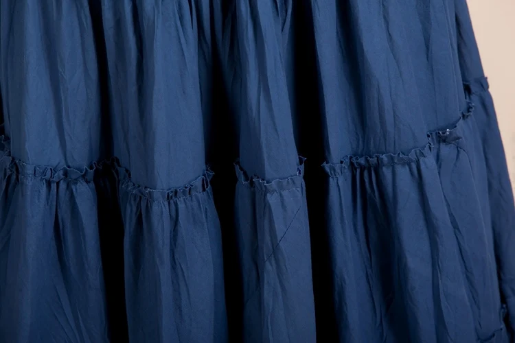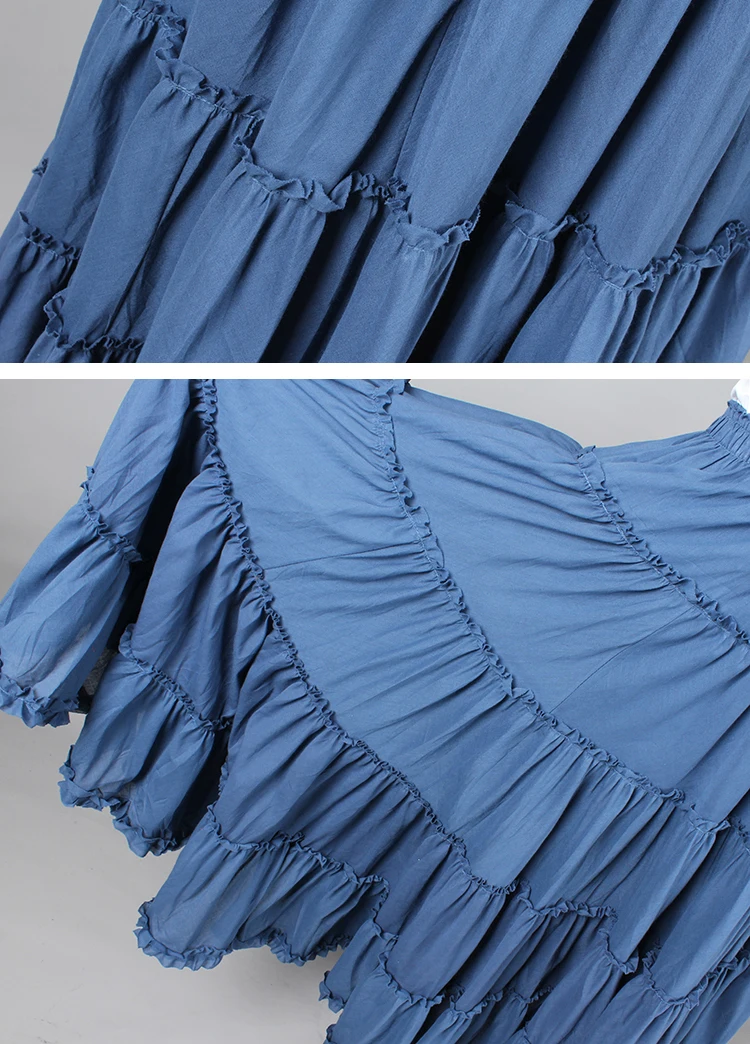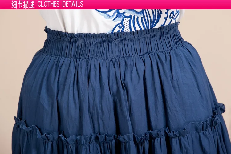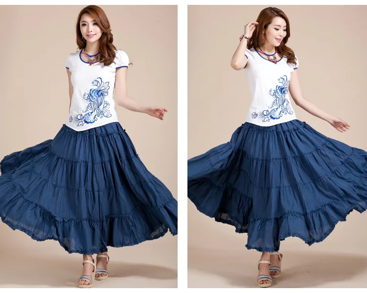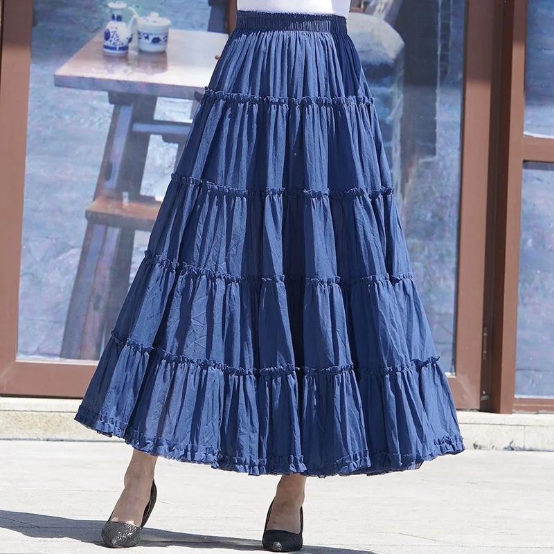 Boho Beach Midi Umbrella Long Skirts Summer Femininas Sundress Maxi Cotton Skirts Elastic Waist Pleated Spliced Patchwork Skirts