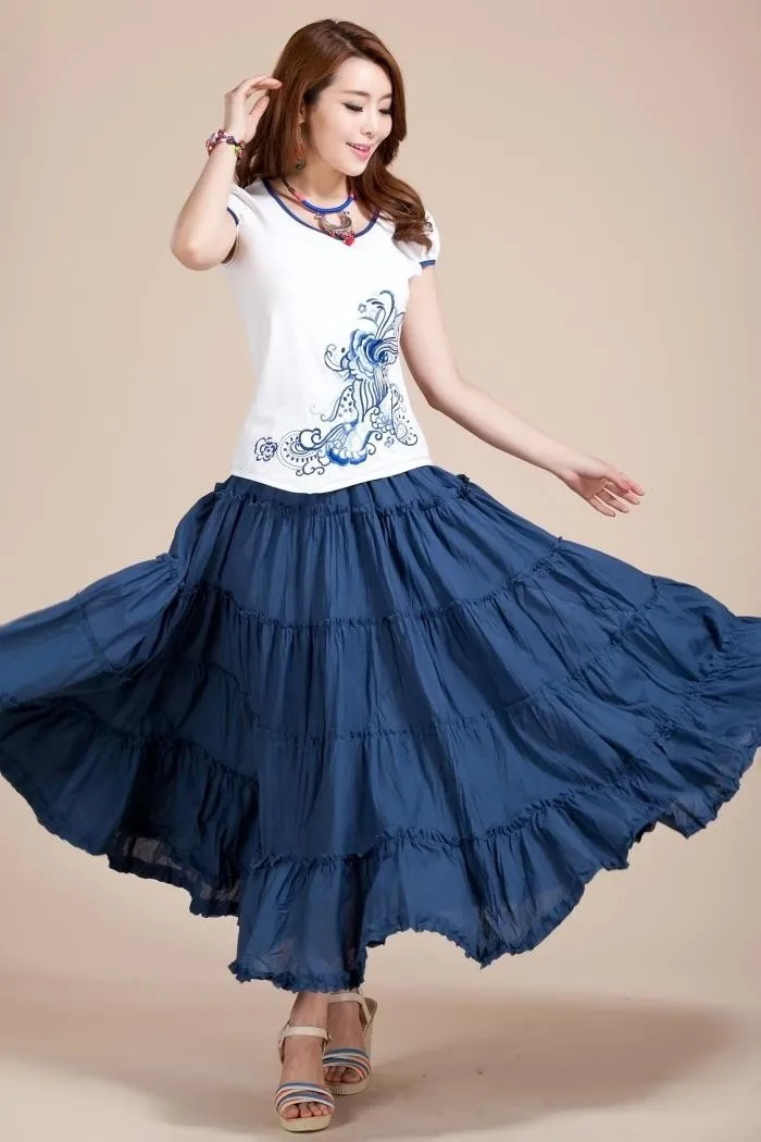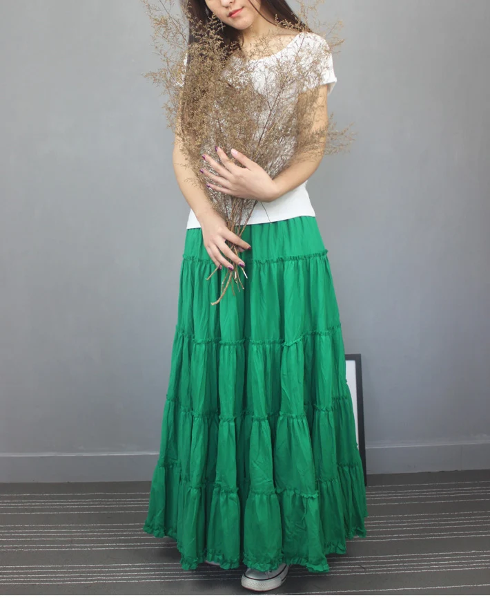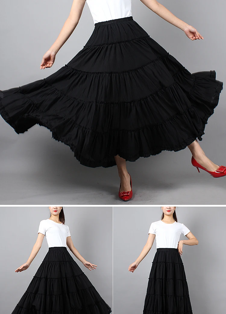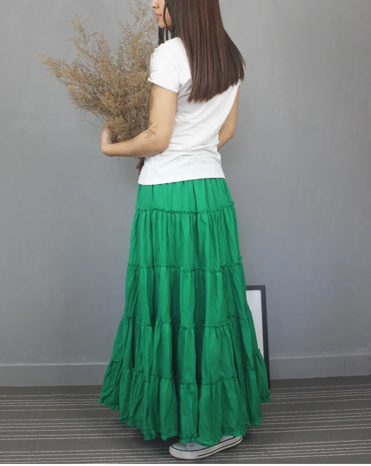 ★Design Elements :Special cake layers umbrella design,big hem,elastic high waist,90cm long to ankle length ,simple solid color,perfect for streetwear high street weedkend party club celebrating dating cocktail evening dinner daily wear shopping vacation office travel beach garden,elegant boho long maxi skirt makes you feel relaxed and confident.
