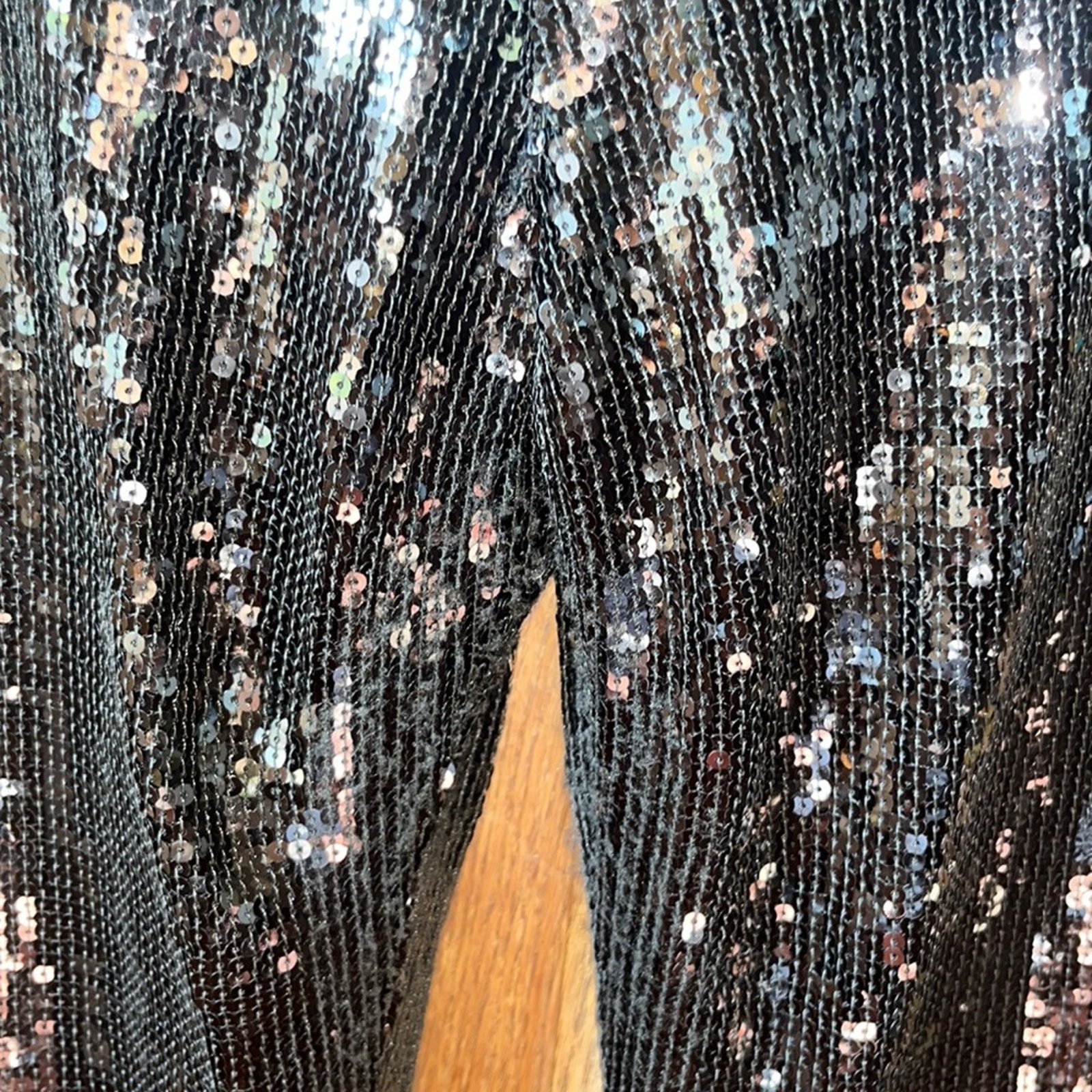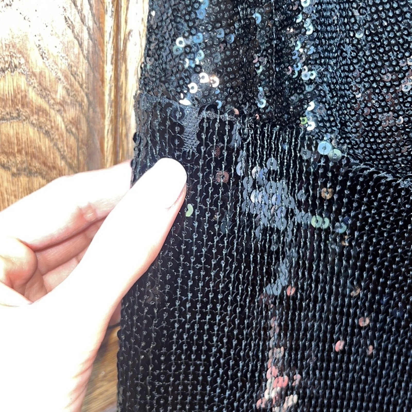 Very Good. Minor pull at interior and at exterior inseam and right chest. Missing a few sequins in one place but not noticeable. Please see pictures for details. Plenty of life left in this fabulous rare piece.