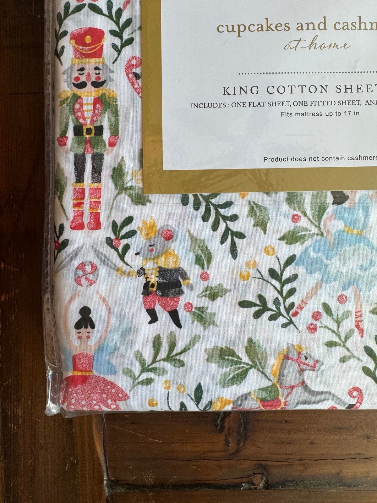 NWT. Bring festive charm to your bedroom with the Cupcakes and Cashmere Nutcracker Christmas King sheet set! Featuring playful Nutcracker designs, this cozy set is perfect for the holiday season. New and sealed, it adds a magical touch to your holiday decor. Limited edition—don’t miss out! Will ship same day.