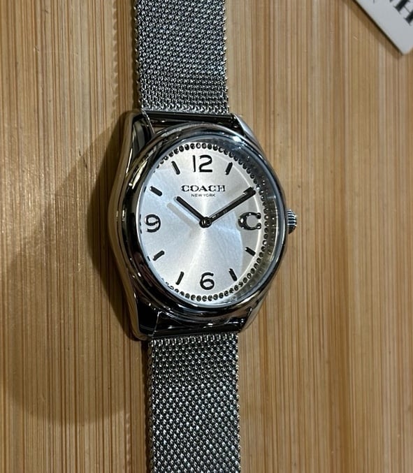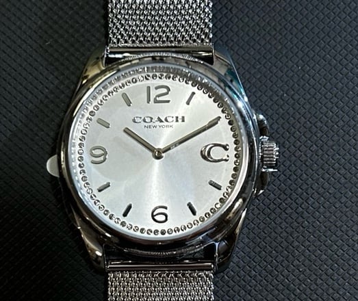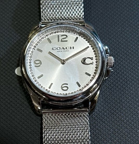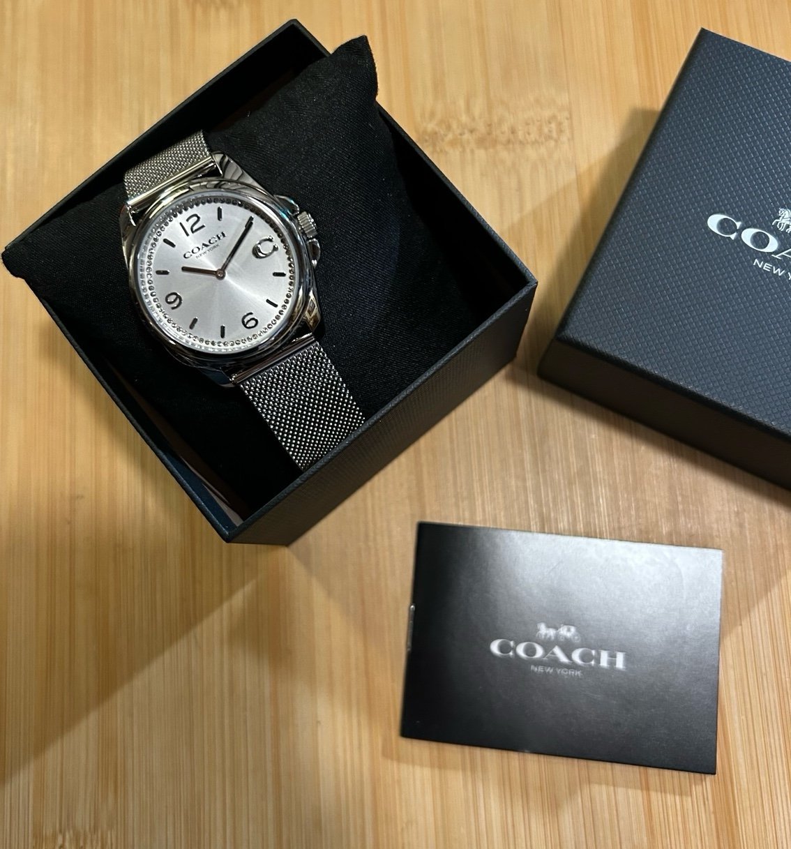 Coach Greyson 14504146 Watch With Silver Face Face With Silver Hour makers Numbers & Silver Hands & Row of Crystals In Side it’s Face & Silver Bezel & Silver Mesh Bracelet. It’s Original are Price is $250 Enjoy This Absolutely Stunning Timepiece At Great Price