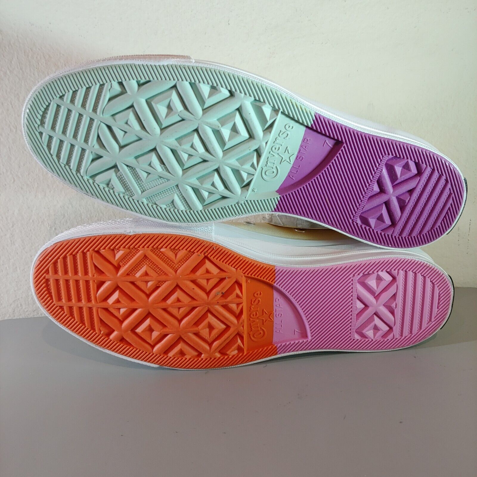 Step up your sneaker game with these limited edition Converse Chuck 70 shoes. Designed in collaboration with Chinatown Market, these unisex shoes feature a colorful canvas upper with stars and 70s themes, perfect for any casual or activewear occasion. The lace-up closure ensures a secure fit while the rubber outsole provides comfort and durability for walking, skateboarding, or basketball activities.
