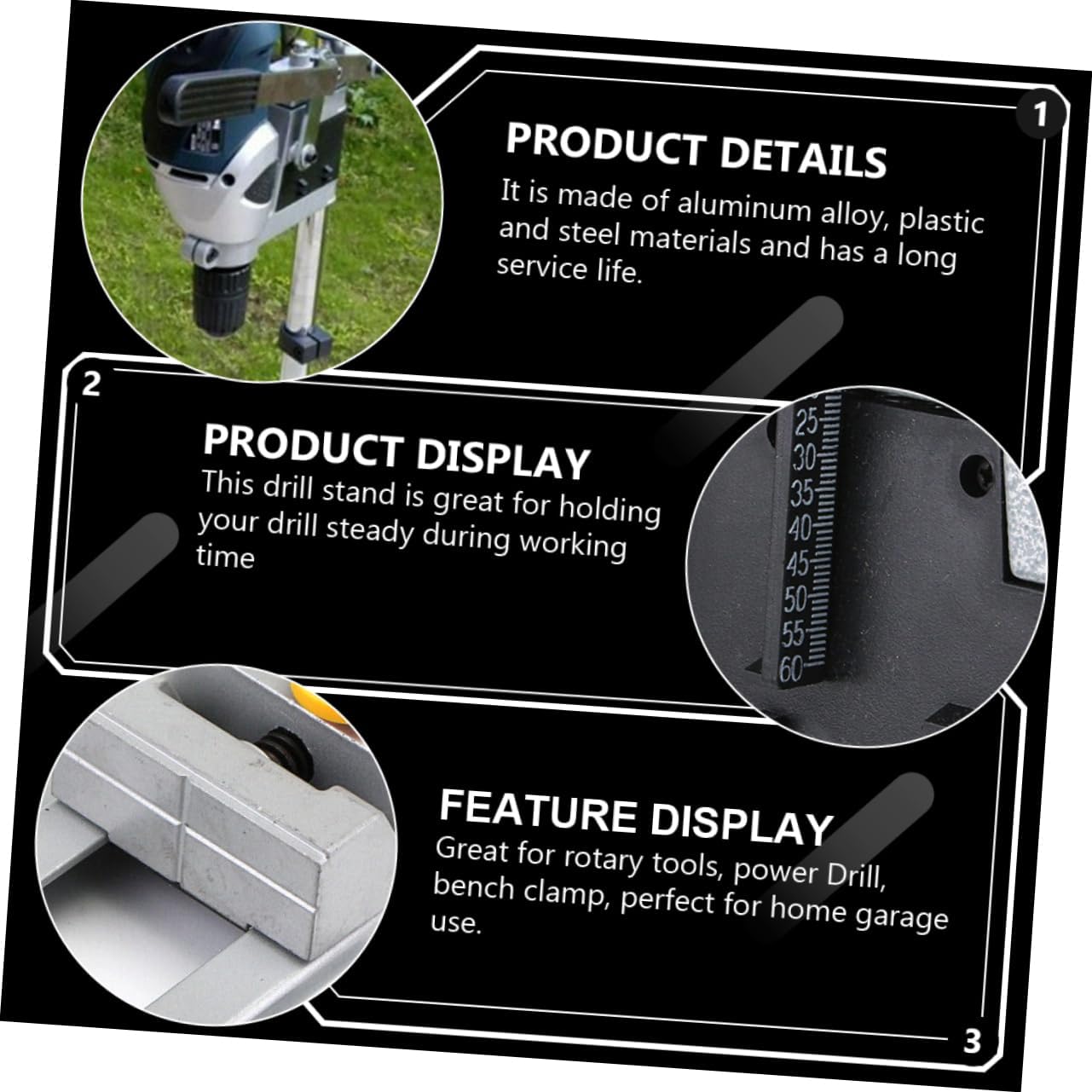 Package List 1 x bracket 1 x flat nose pliers 1 x wrench 1 screws Features - Color: Silver Single Hole Drill Rack. - Material: Aluminum alloy, plastic, steel Stand for Drill Press. - Adjustable clamping range: 38mm-42mm Bench Clamp Stand. - Size: About 50.00X14.50X14.50cm/19.65X5.70X5.70inch Table for Drill Press. - The drill press stand assists you to drill holes with high precision Drill Press Rack. - , you can buy this tool at an Universal Drill Stand. - To drill accurate perpendicular and angled holes for wood, metal, or plastic material Drill Press Table. - If you are out a floor drill press table, the drill stand will be your choice Single Hole Drill Stand. - It is made of great sturdy materials and will not be easily damaged Bench Clamp Support Tool.Goods InformationBench Clamp Support Tool Are you looking for a , yet drill press rack? Are you in search of a sturdy, trustworthy tool that can do multiple jobs? , ! Our drill press rack must meet your needs.Universal Drill Stand It is one of the choices for you
