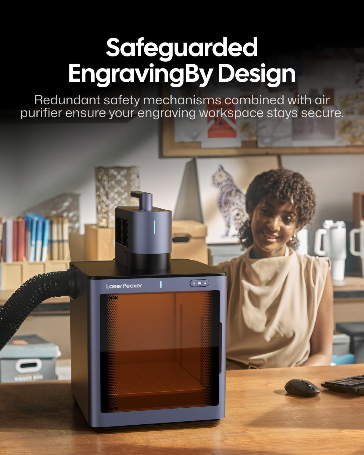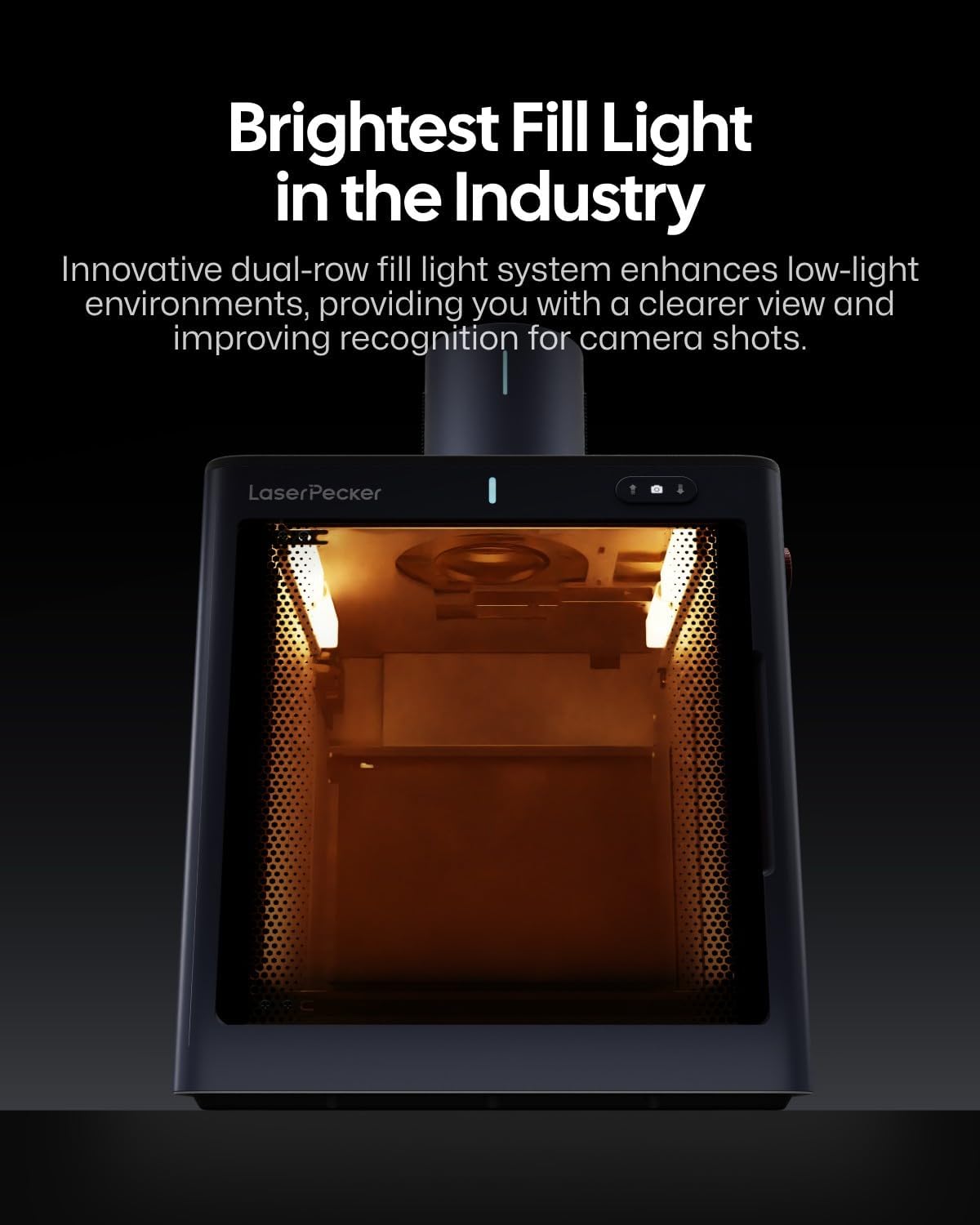 Enclosure for LaserPecker 5 – Auto-Alignment Camera, Class 1 Safety, Dual-Row Fill Lights, Motorized Adjustable Base, Instant Safety Shutoff, Smoke-Free Engraving