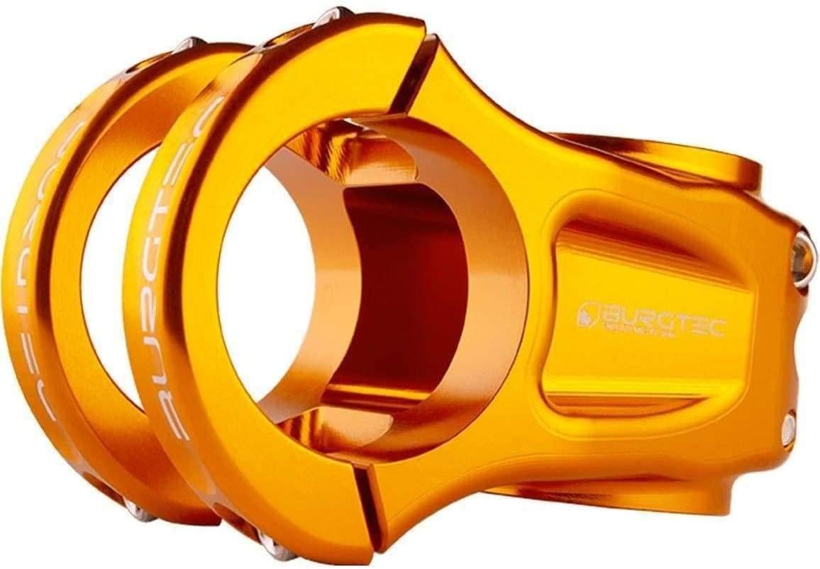 Manufactured in the UK, the Burgtec Enduro MK3 Stem boasts a CNC-milled aluminum construction with an internal steerer clamp system, ensuring durability and performance. The revised design reduces weight and introduces sleek aesthetics, while the extra high 48mm stack height guarantees optimal clamping force distribution along the steerer tube. Laser-etched logos on the top and bottom provide a stylish touch.