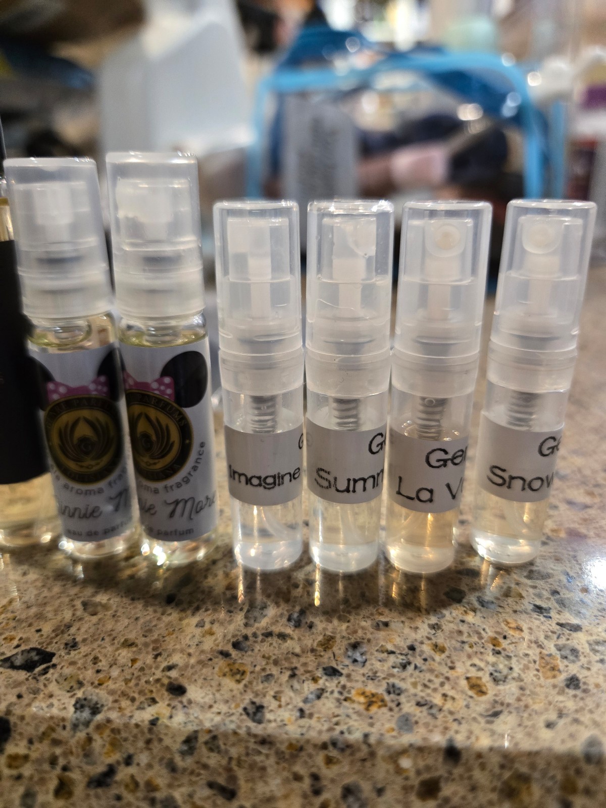 2ml: Snow Angel, Summer High, Imagine a Symphony, La Vanille, Roux (2-3 sprays used)