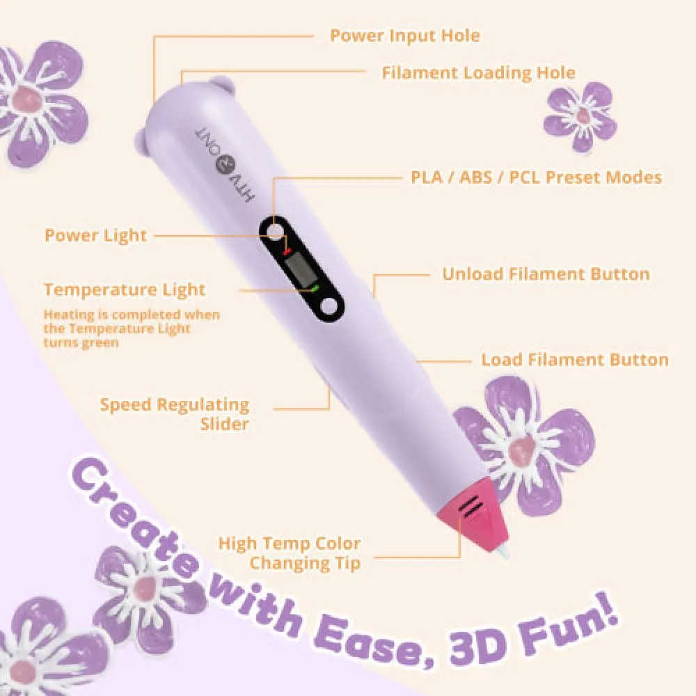 🌙Compatible with ABS/PLA/PCL: The 3D print pen allows dive into endless possibilities with ABS, PLA, and PCL materials. Pre-set temperature modes cater to each material, offering flexibility for your projects.