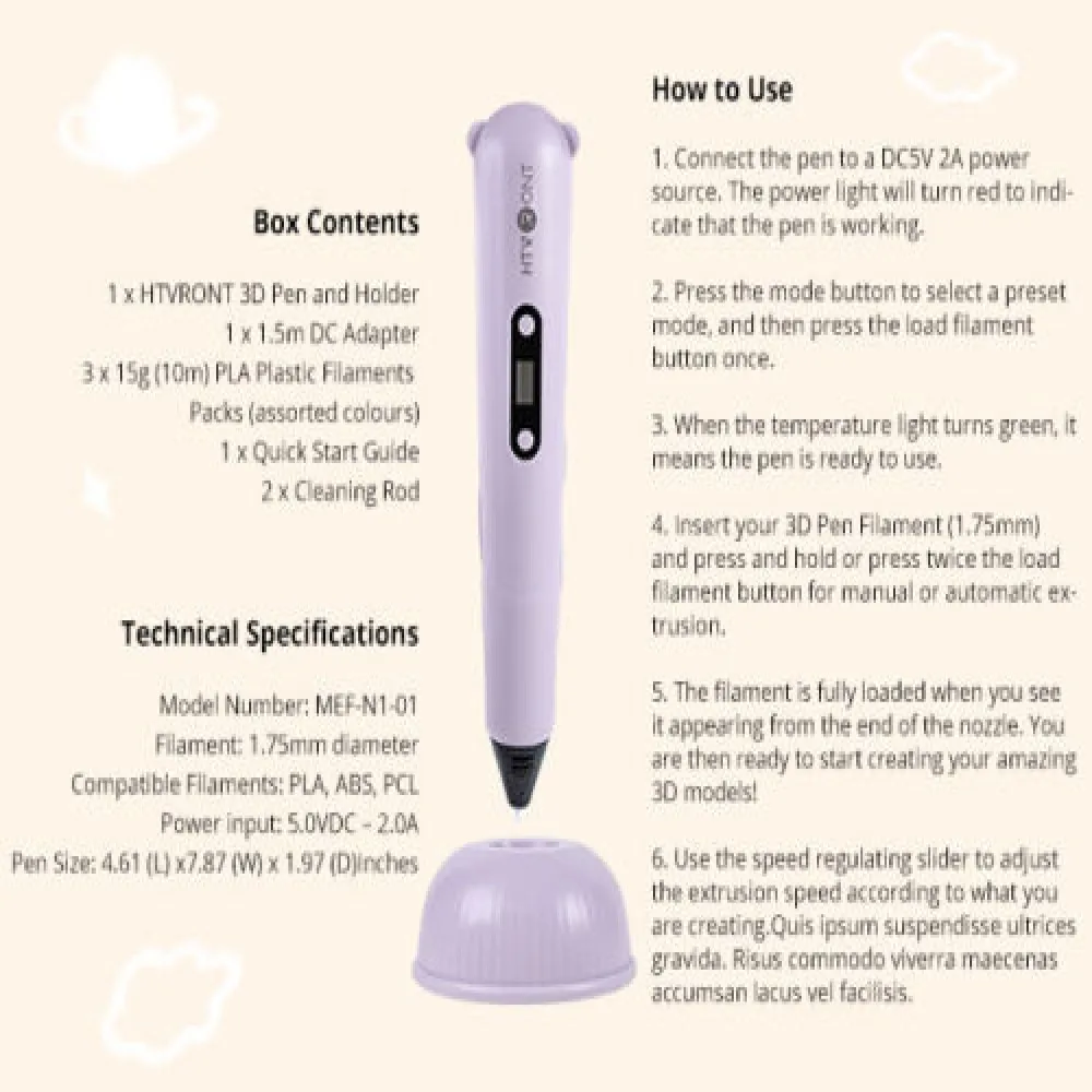 🌙Comprehensive Bundle: Embark on a thrilling journey with the HTVRONT 3D pen, pen holder, 3 rolls of 393 inches PLA material, adapter, and two cleaning needles. Immerse yourself in the world of limitless imagination and let our top-notch quality and dedicated service exceed your expectations.