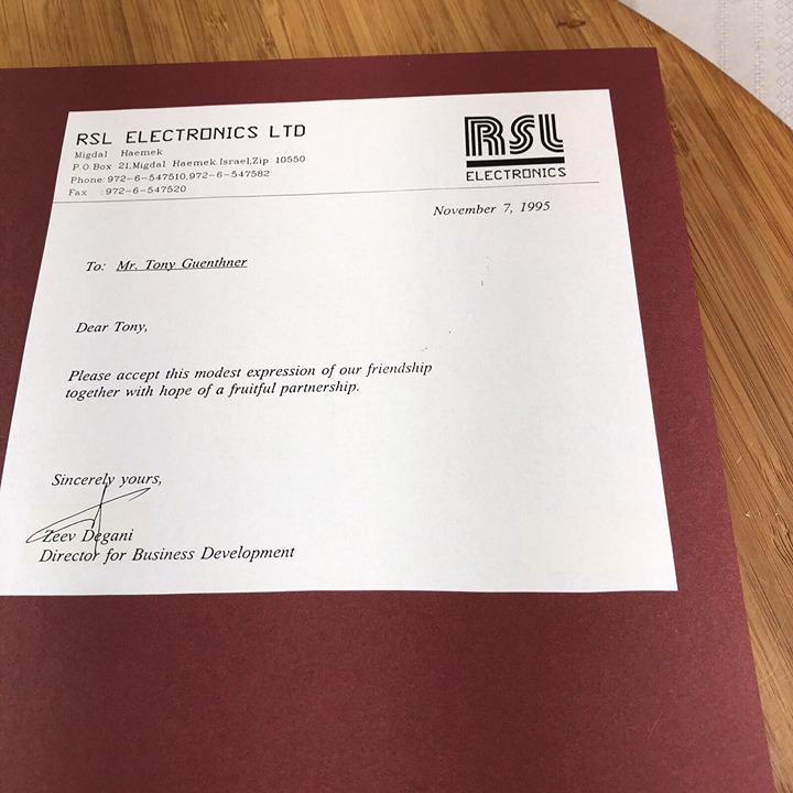 Signed/Inscribed to Tony Guenthner By Zeev Degani