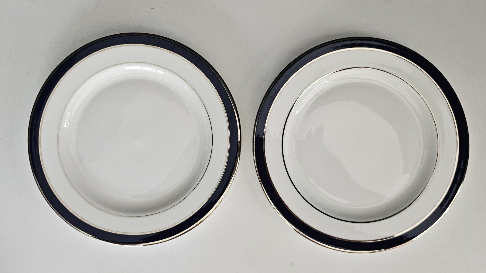 Lenox Classics Collection Federal Cobalt Platinum Fine Bone China, Set of 2 5-Piece Place Settings, 2 Dinner Plates 10.25", 2 Salad/Dessert Plates 8", 2 Bread Plates 6.5", NWT, this is part 1 of the set-the teacups & saucers are listed separately to allow for more photos, BUNDLE FOR ENTIRE SETS