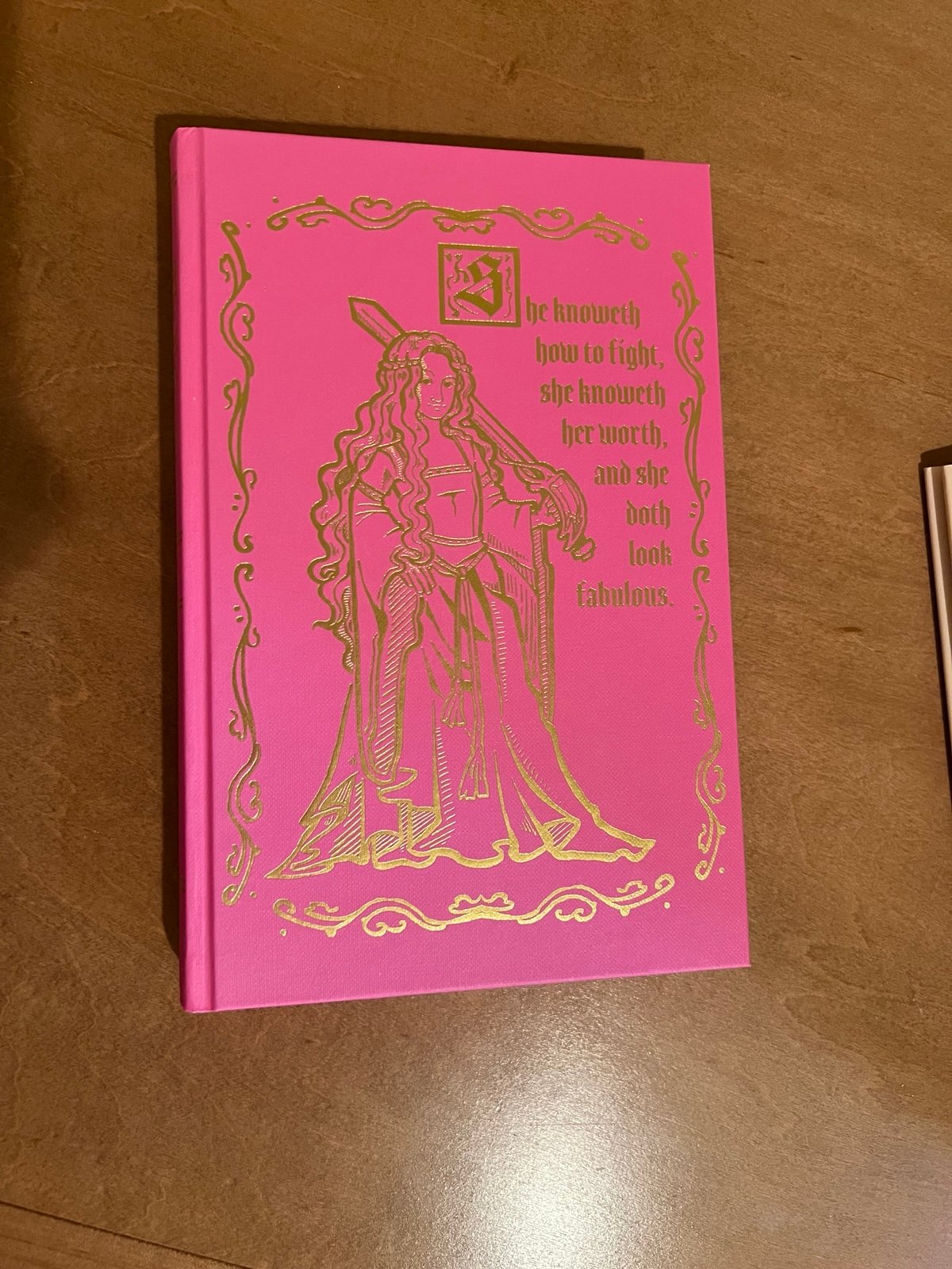 Locked Library special edition of The Princess Knight by Cait Jacobs ⚔️✨ Beautiful gold foiling (on the dust jacket, hard cover, and end pages), vibrant sprayed edges, and the book includes an attached pink ribbon bookmark.