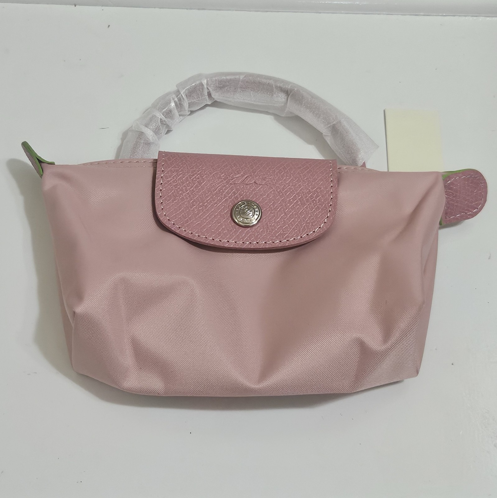 Longchamp mini bag with top handle and crossbody.