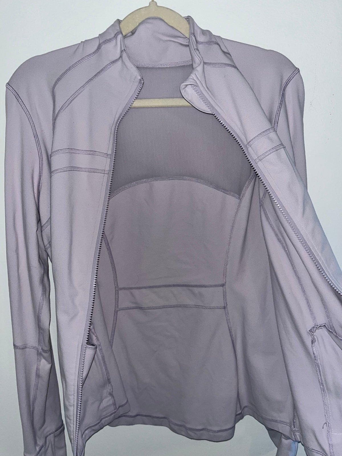 This define jacket has been used quite a bit! I bought it a few years ago, but still has a lot to give. It’s always been a little big on me so I don’t reach for it as much anymore. I usually put fair for most of my clothes because some have been worn, but it is in the better side of fair. The color is Faint Lavender. I am open to offers!