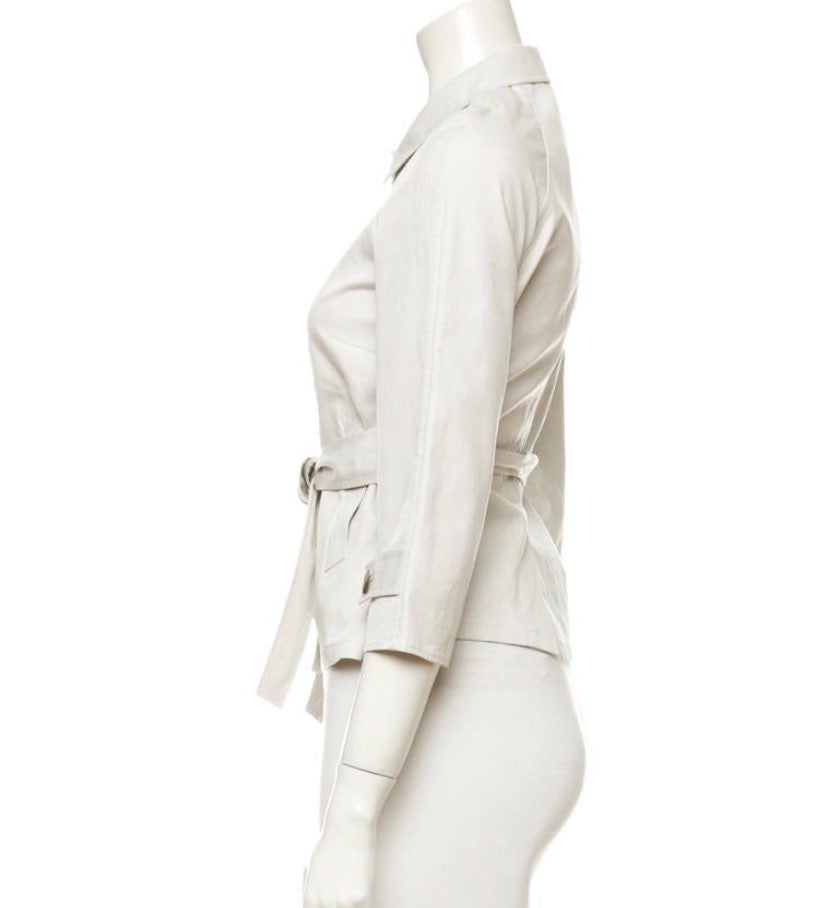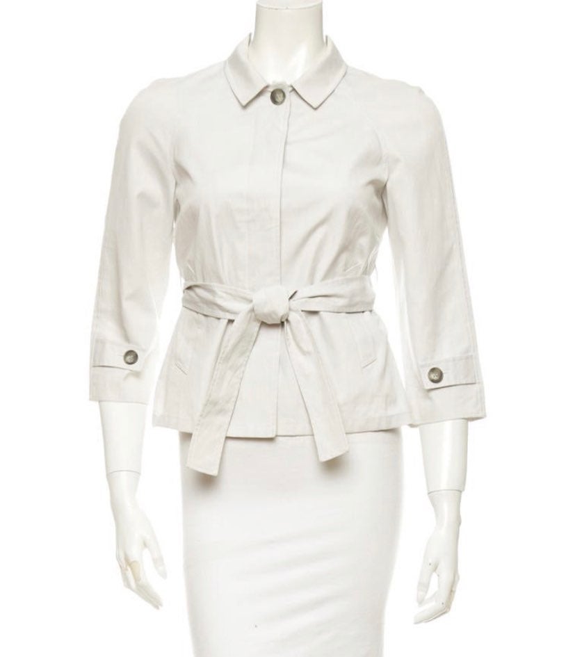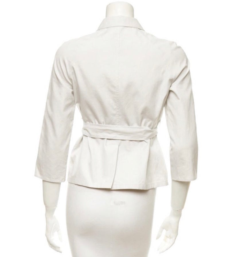 awesome little MIU MIU jacket, belted at the waist. basically it's a trench coat cropped at the waist. looks great belted or without belt! Also intended to be worn as a blouse!