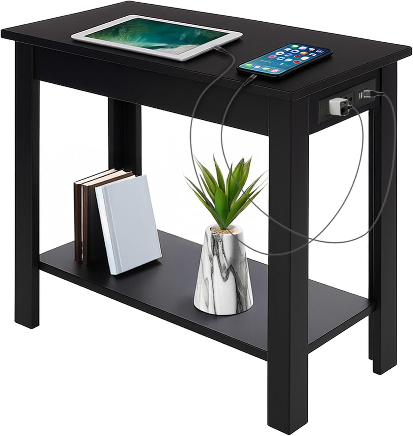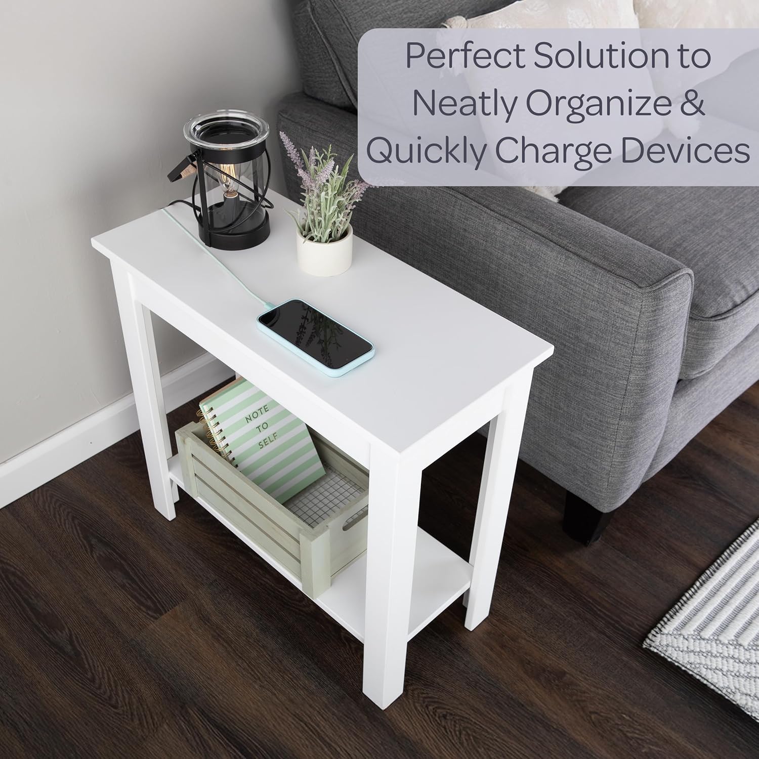 | Item Type Name | Narrow Side Table with Charging Station - Small End Table with 2 USB Ports, 2 Power Outlets, and Storage Shelf - Slim Nightstand for Living Room, Bedroom, or Small Spaces by Lavish Home (White) |