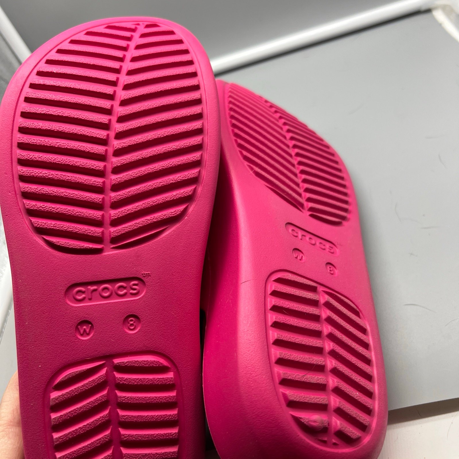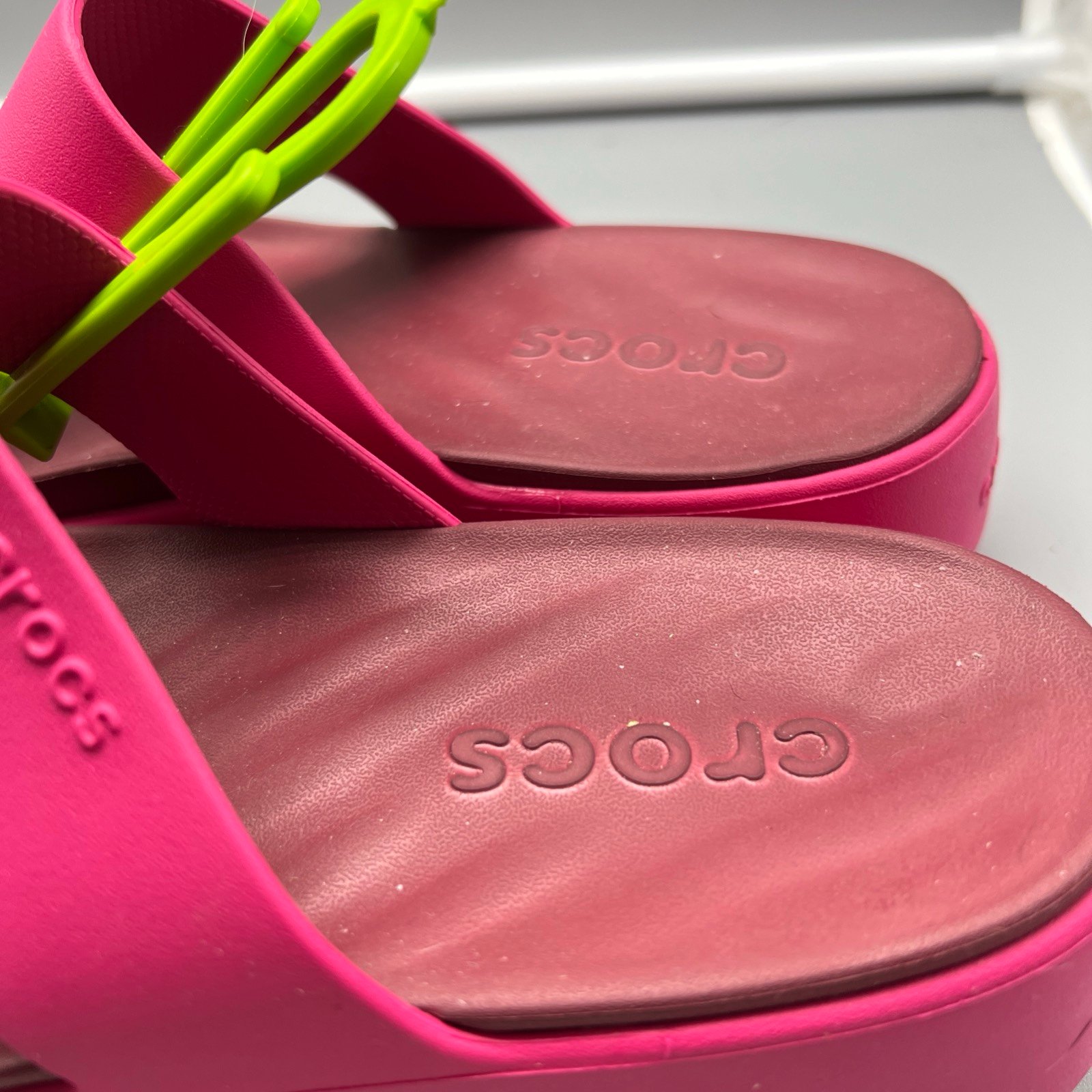 The New CROCS Women's Getaway Platform Toe Loop sandals in Dragon Fruit Pink are the perfect combination of style and comfort for any occasion. With a low wedge heel and slip-on closure, these sandals are ideal for travel, activewear, parties, casual outings, and even formal events. Made of rubber with a standard shoe width, these sandals are designed for all-day wear during the summer, fall, and spring seasons. The vibrant pink color and dragon fruit pattern add a fun and trendy touch to any outfit, making them a versatile addition to any woman's shoe collection.
