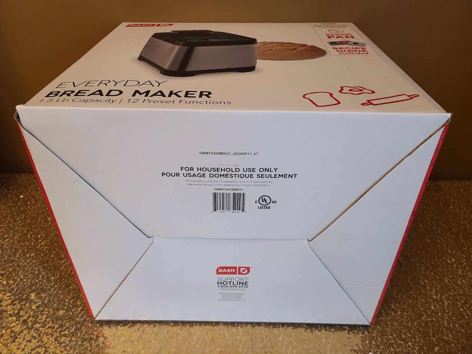 NEW - Dash Everyday Bread Maker (1.5Lb Capacity,12 Presets, Black & Stainless)