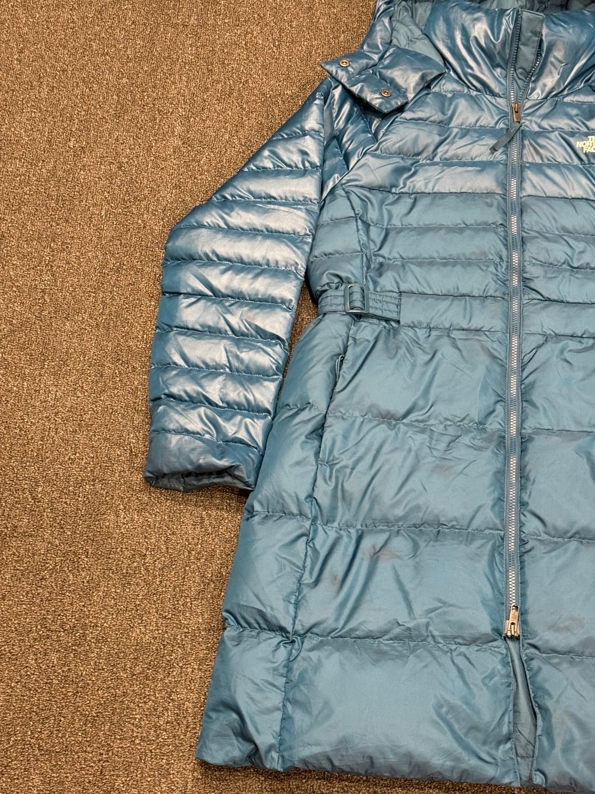 The North Face Puffer Jacket/Parka/Winter Coat is brand new with tags! It does have a few spots from storage on the front and back that I think would come out in the wash with some stain remover. It is Size Women’s XL.
