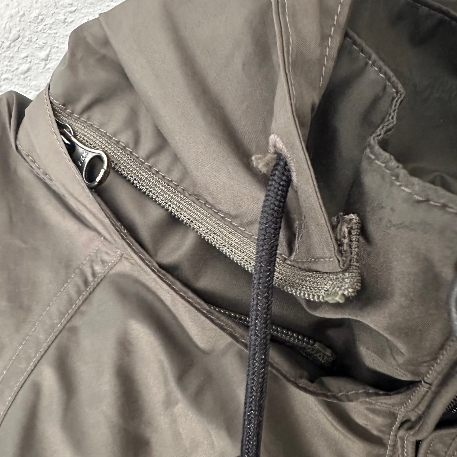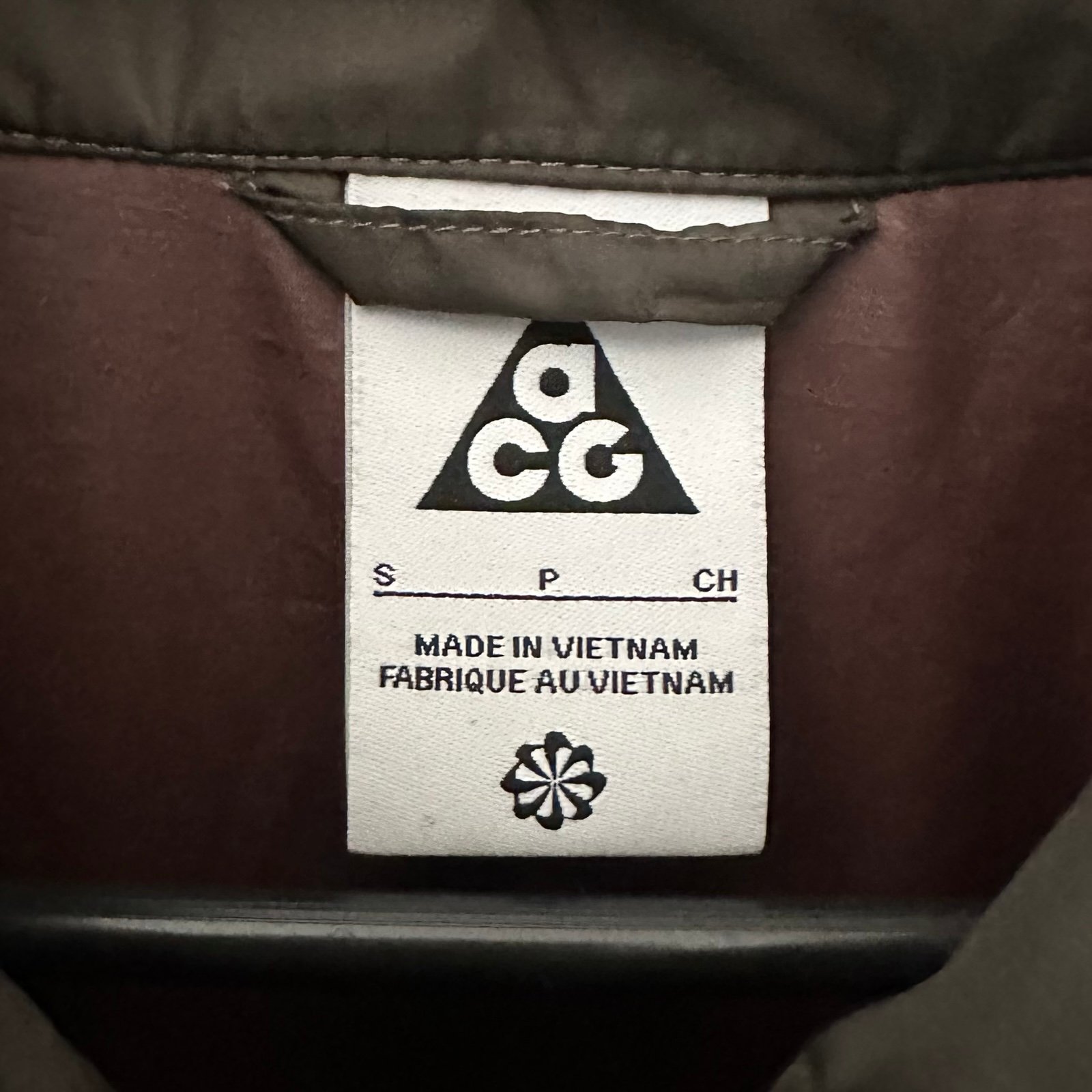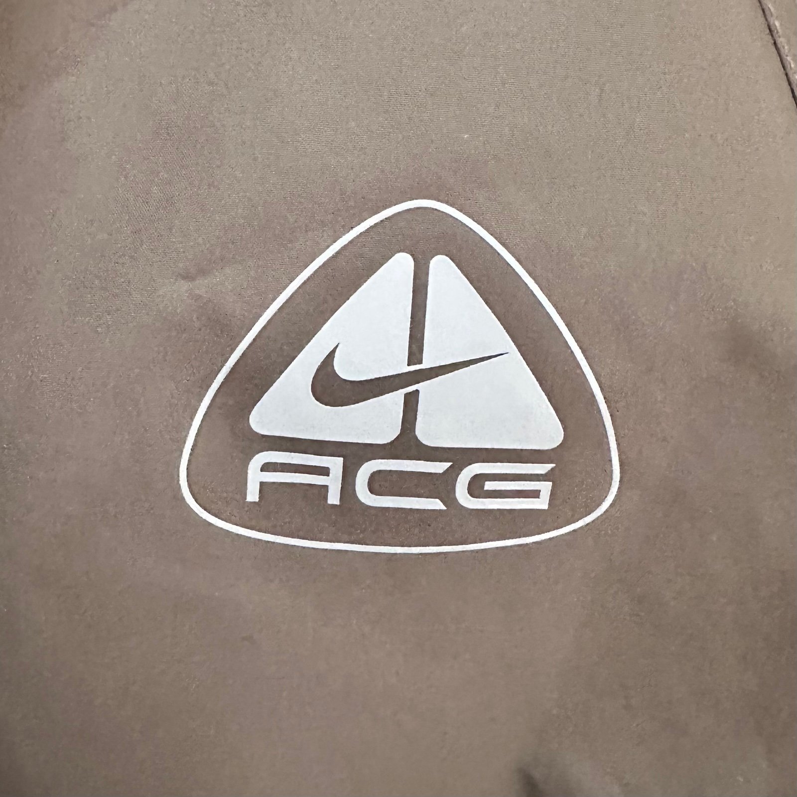 The Nike ACG Oregon Series Reissue Micro Shell Jacket in men's size small is a stylish and functional piece of activewear. Made of durable nylon material with a lace fabric type, this jacket features a solid beige color and a round neckline with a full zip closure. The athletic fit and logo accents add a sporty touch, perfect for various activities like gym training, running, or skateboarding. Ideal for winter, fall, or spring seasons, this hoodie from the Nike ACG product line is a versatile addition to any man's wardrobe. Good condition no flaws