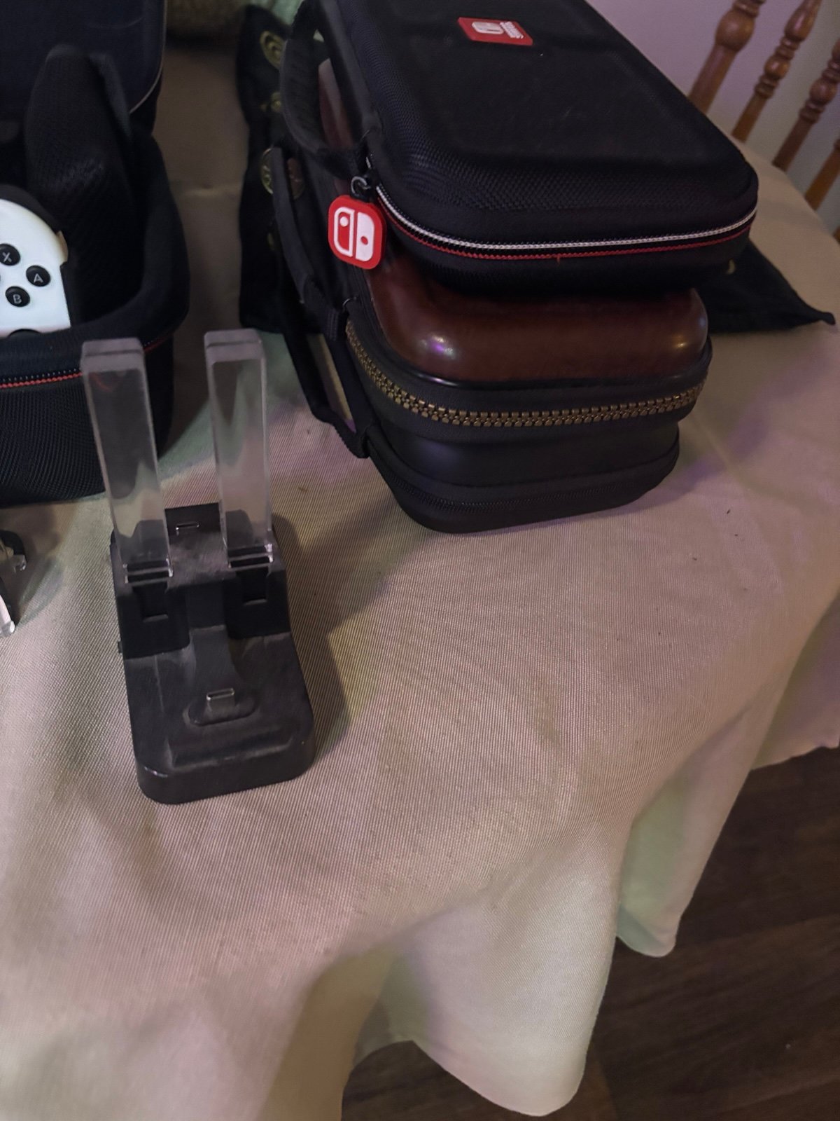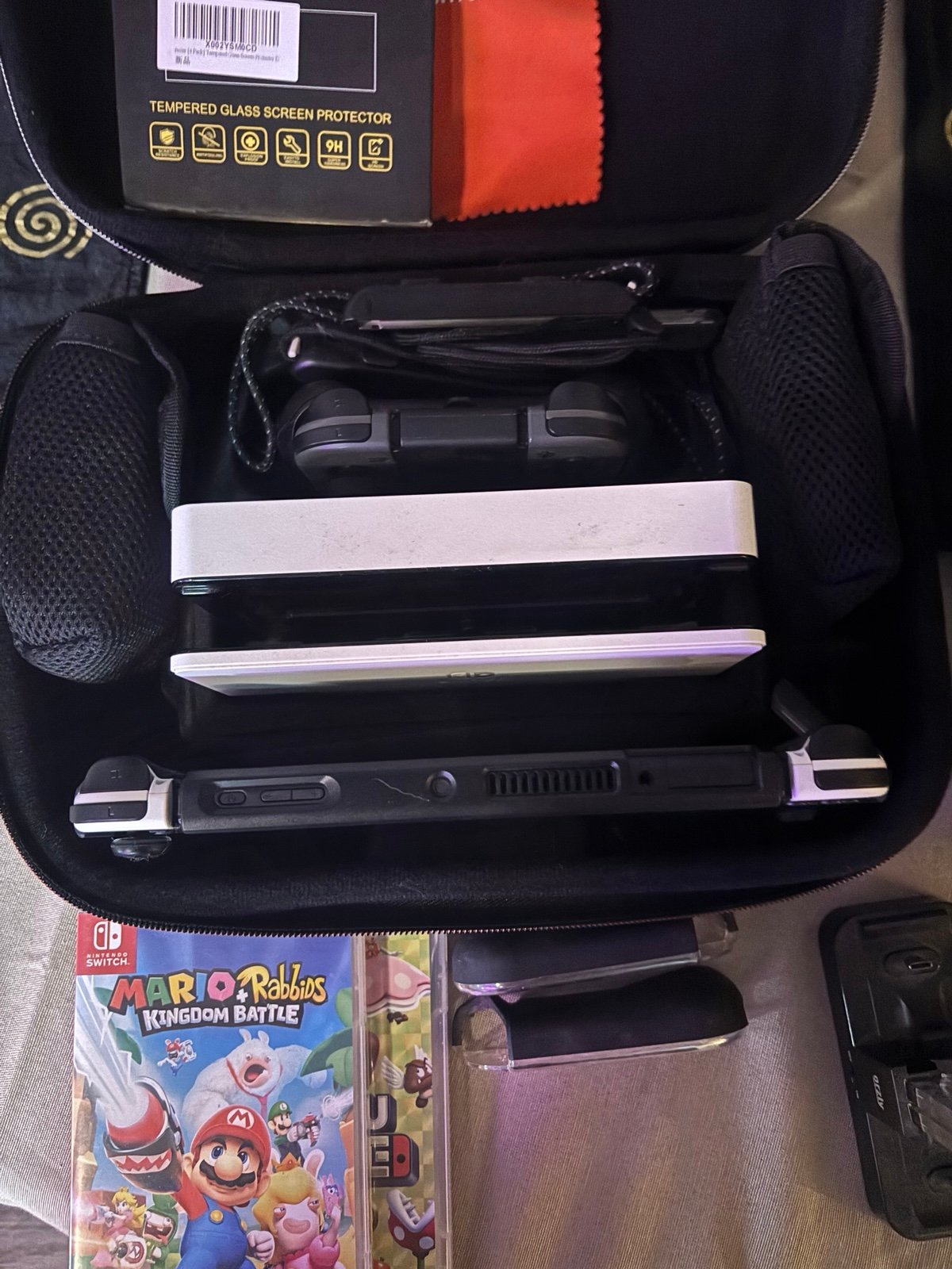 Switch is in great condition barley used still has a screen protector and case on it. Comes with two extra joycons and a charging station, 3 extra carrying cases, extra screen protectors still in box, and comes with 2 Mario games, and a micro sd card .has some dust on it. Great deal for anyone looking for a switch. Willing to consider offers just lmk