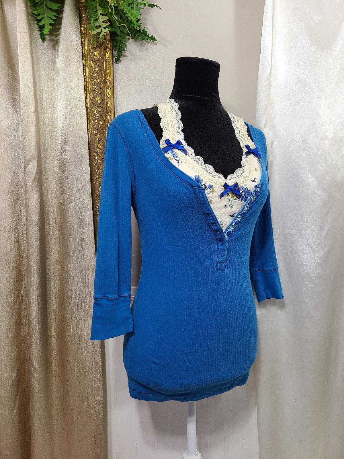 Vintage Aeropostale Button Front 3/4 Sleeve Babydoll Henley Ribbed Layering Top