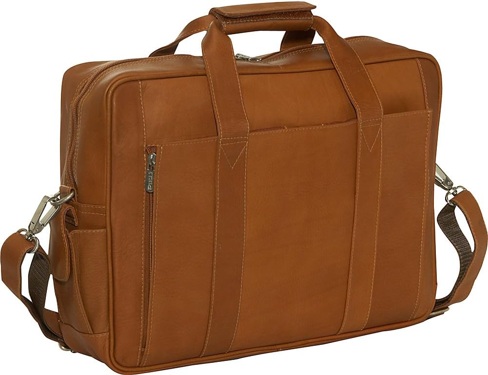 Well padded laptop carrier (15 inch x 11 inch x 2 inch) with front zip down pocket revealing a full organizer side phone pocket, double handles for easy carrying, and an adjustable/detachable shoulder strap