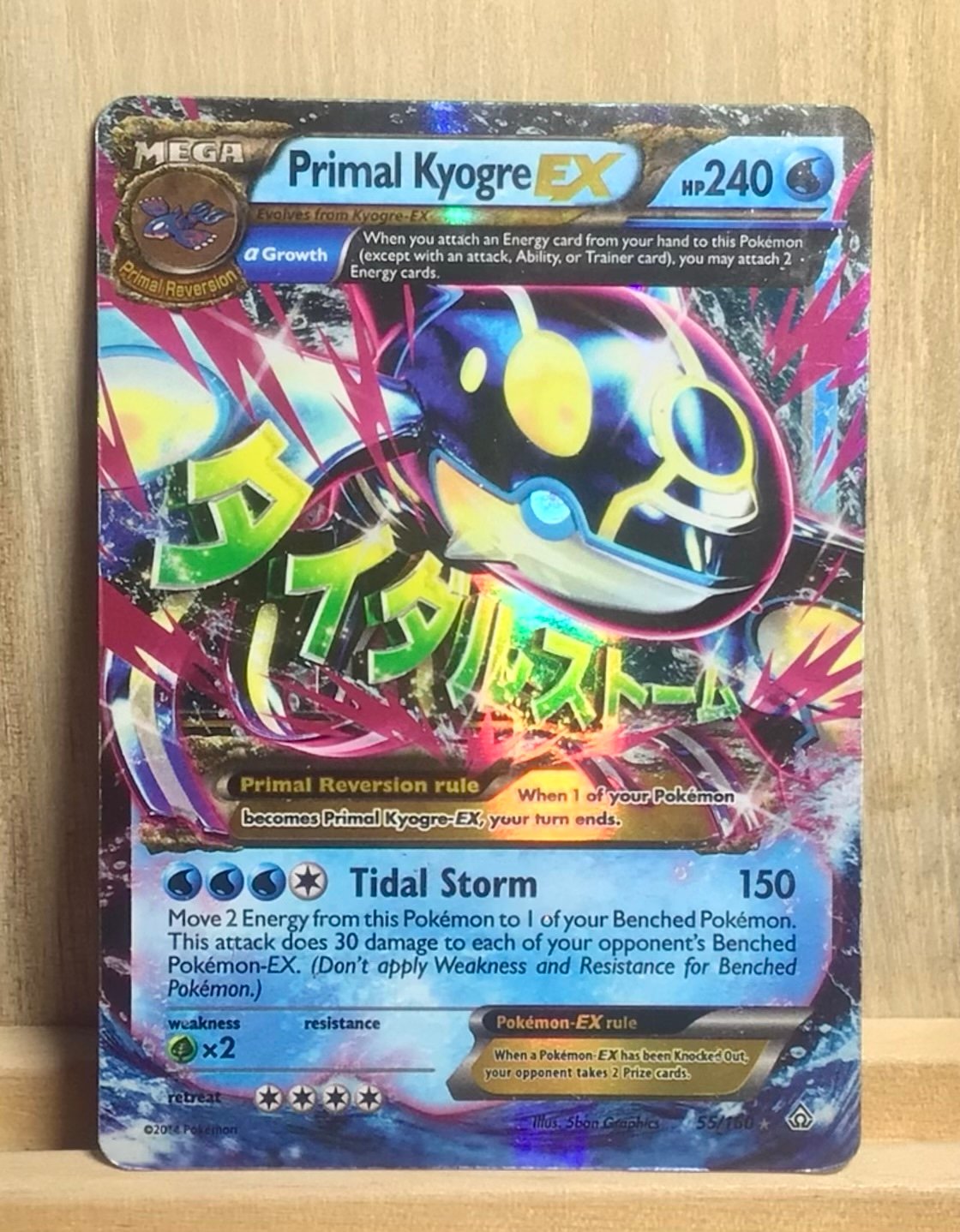This highly sought-after card is a must-have for any serious Pokémon TCG collector. With its stunning holo finish and ultra-rare status, the Primal Kyogre EX card is a true gem. It features the Water attribute and Primal stage, making it a formidable opponent in any battle.