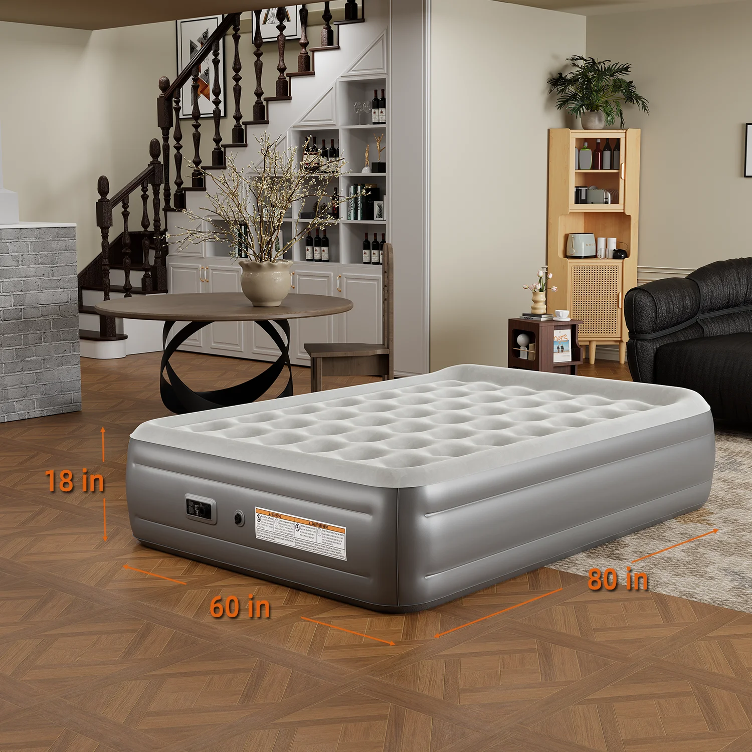Flocked Top & Thick Waterproof Material: This 18-inch elevated air bed is designed with puncture-resistant PVC, with premium comfort top flocking, waterproof, ensuring a comfortable sleeping experience.