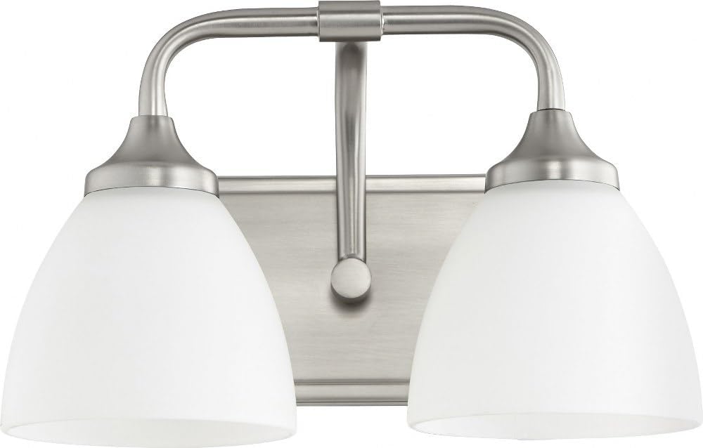 Quorum 5059-2-65 Transitional Two Light Vanity from Enclave collection in Pewter Nickel Silver finish . Two Light Vanity from the Enclave collection. Height: 8.50 inches Width: 13.00 inches. Style: Transitional Light Type: Vanity Finish: Satin Nickel. Safety Rating: Damp and Safety Listing: Damp.