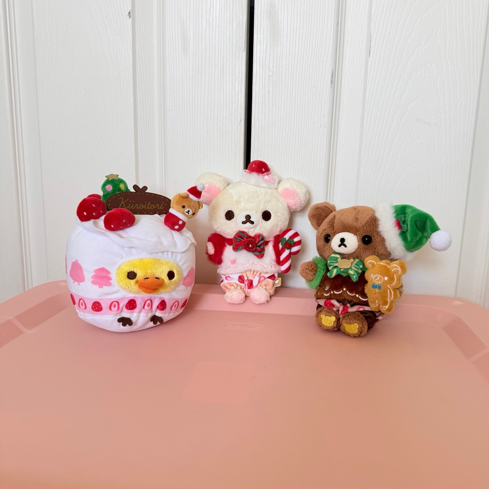 kawaii plush, Christmas plush, Japanese plush, cute holiday decor, Rilakkuma set, festive plushies, soft stuffed animals, kawaii character, imported plush, holiday collectible korilakkuma