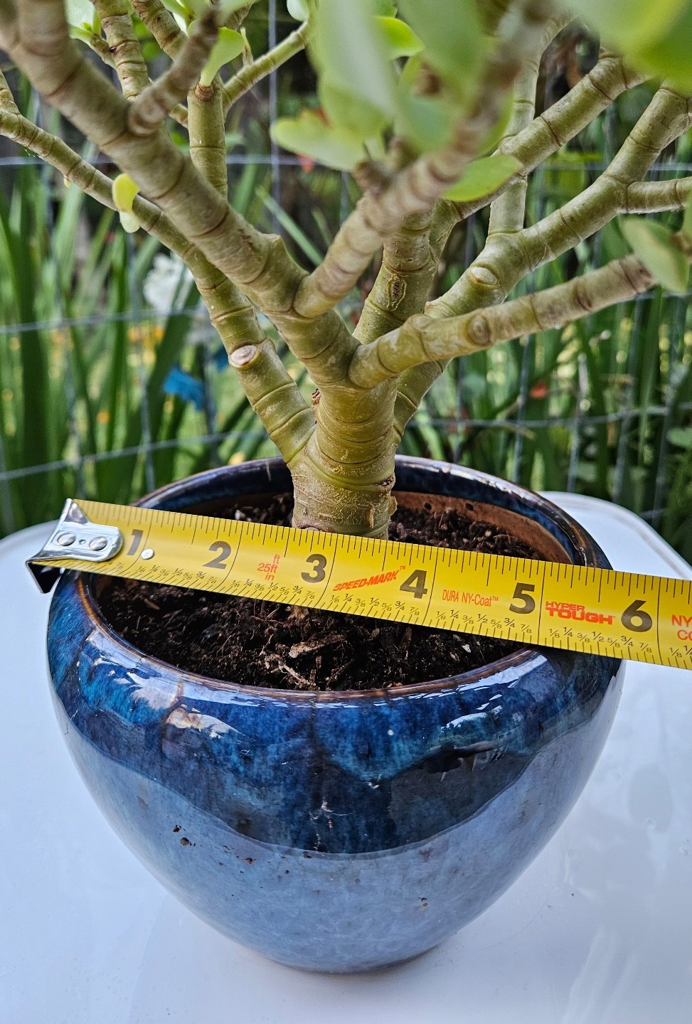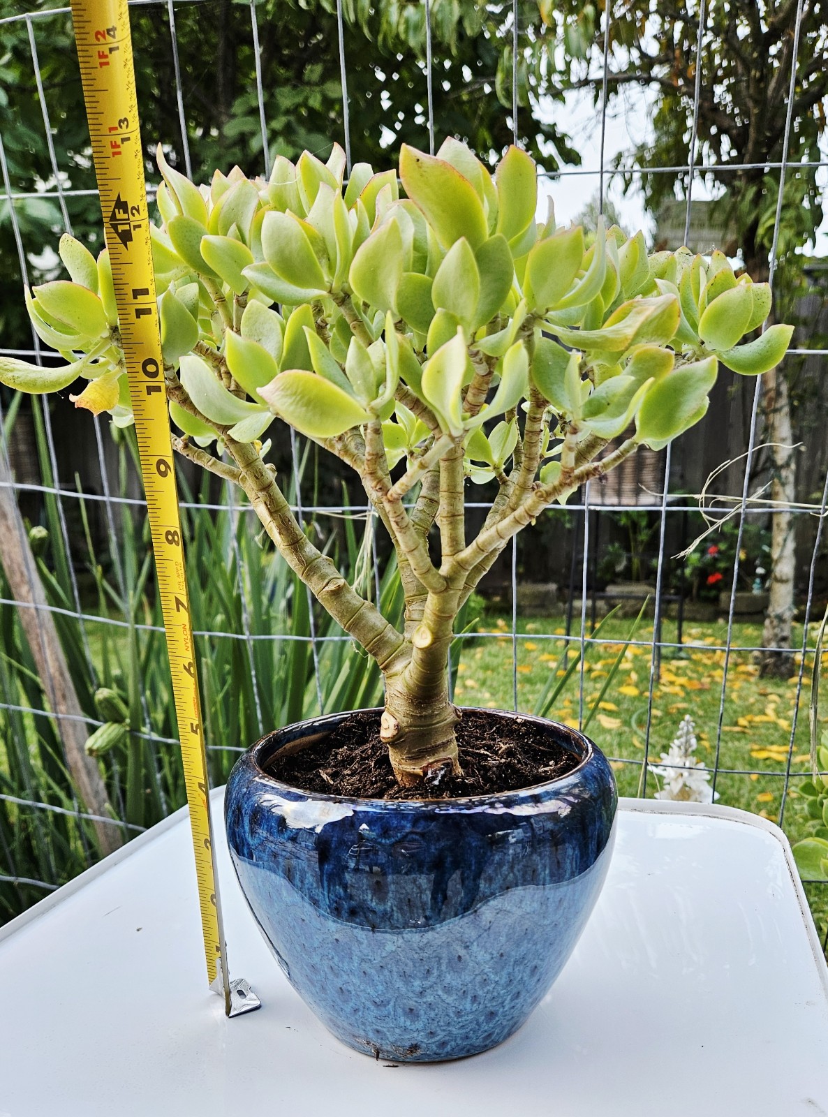 This jade can happily live in the same pot for years — just trim the bottom roots occasionally to keep its miniature size.