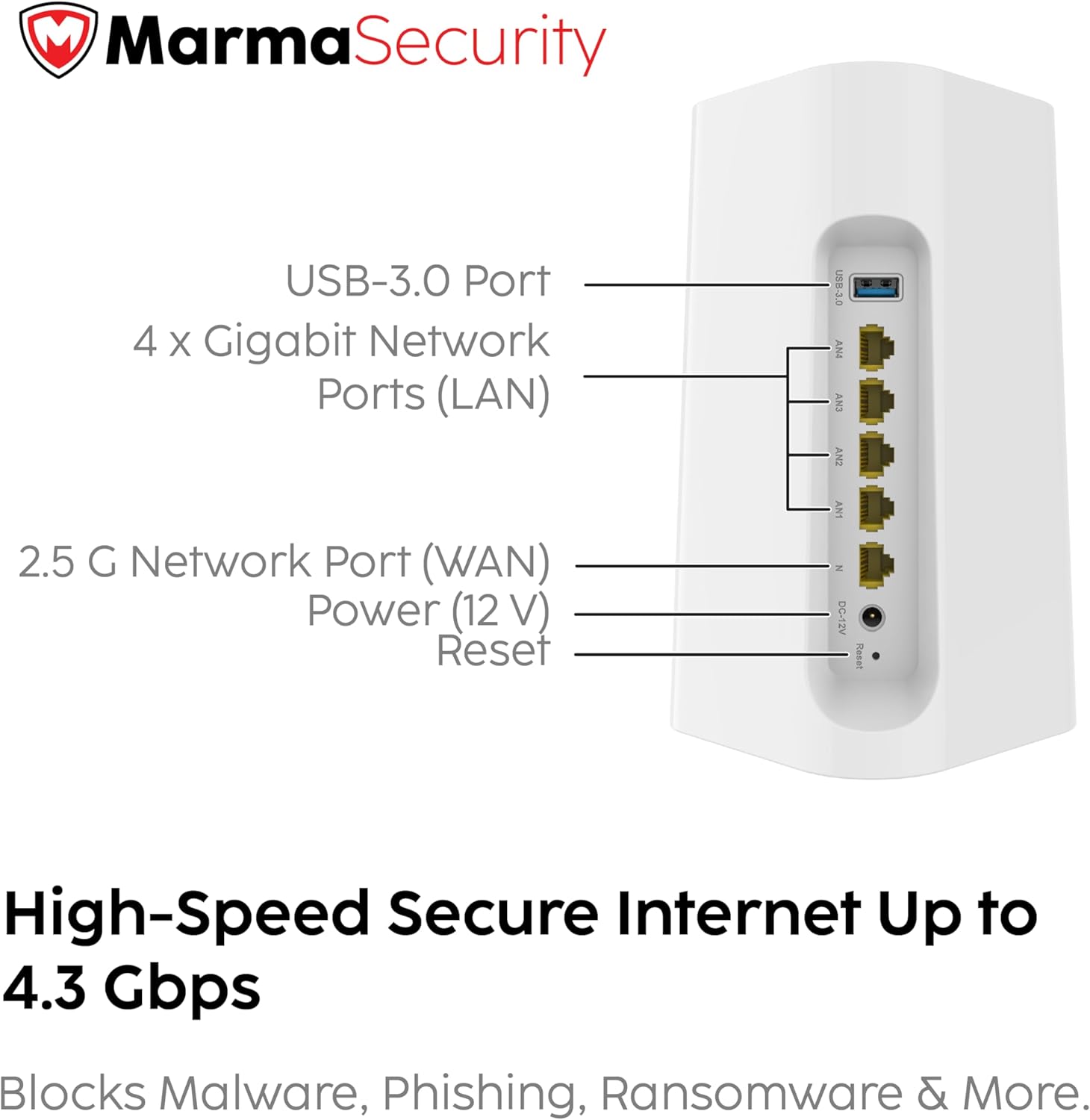 SafeBiz - Wireless Cybersecurity Solution, Next-Gen Firewall, Web Filtering, Phishing/Ransomware/Malicious Website Protection - Wifi6E, 4.3 Gbps, 3000 Sq.Ft Coverage