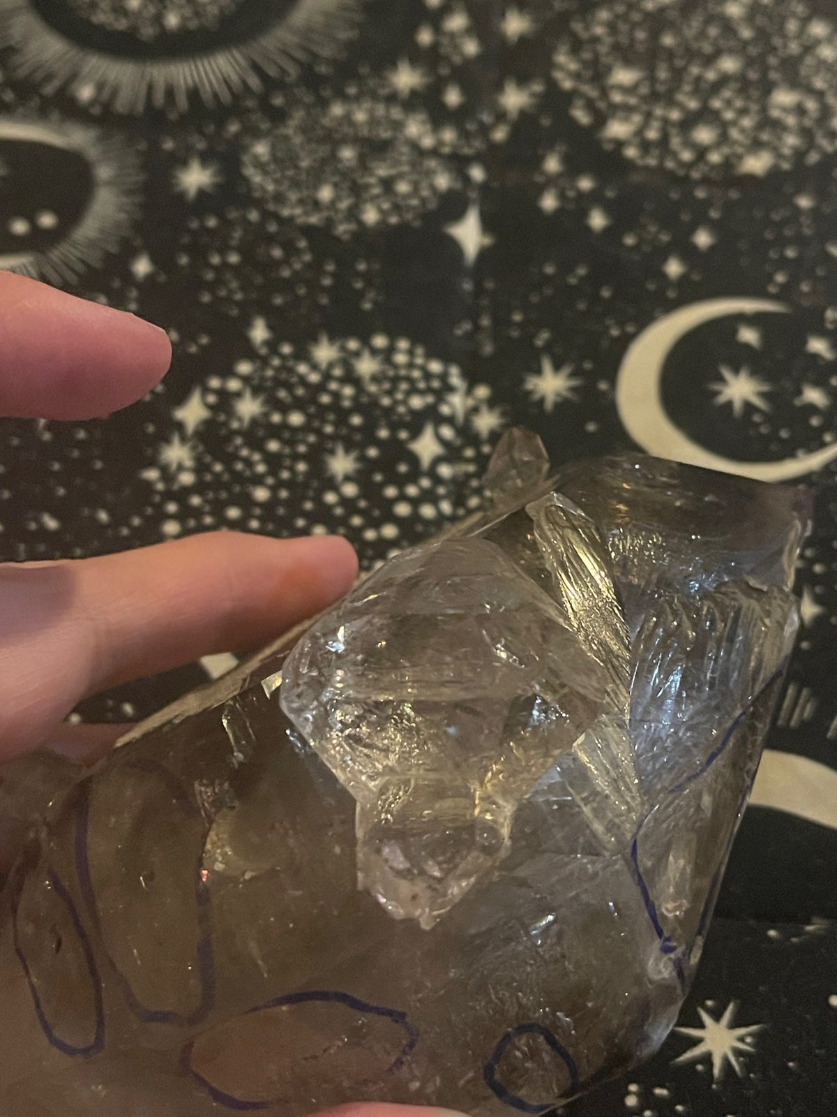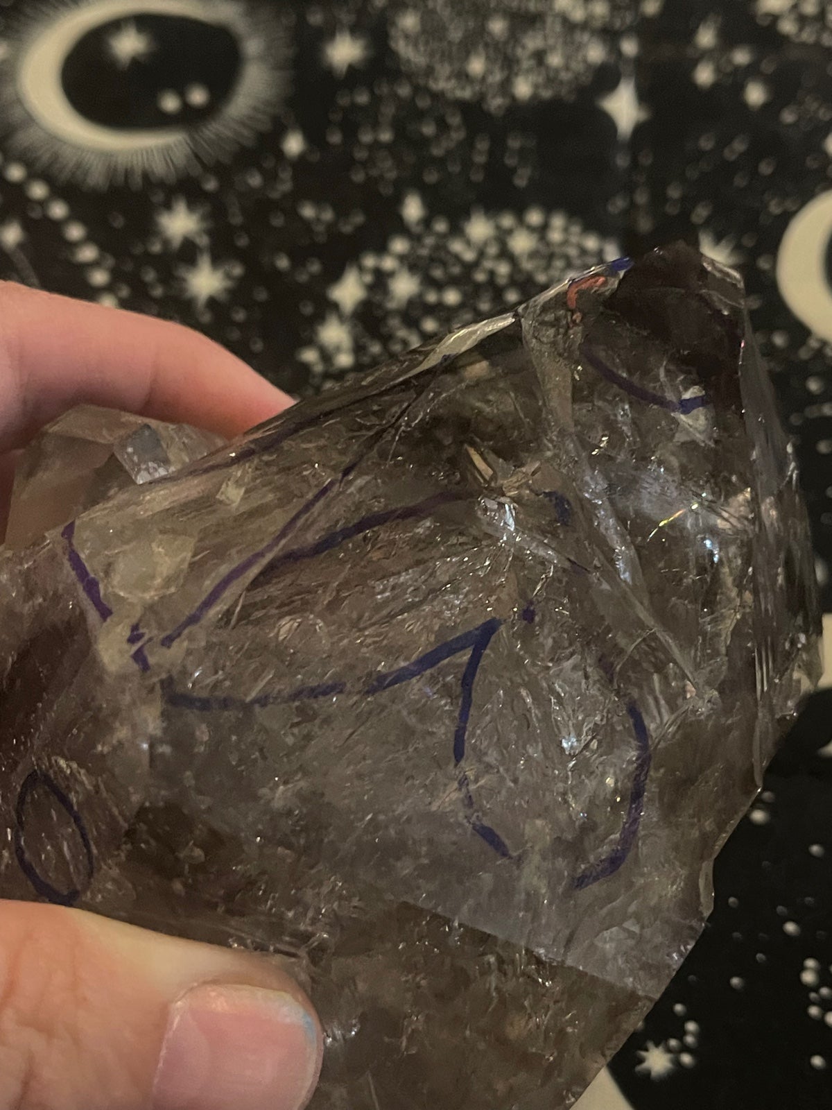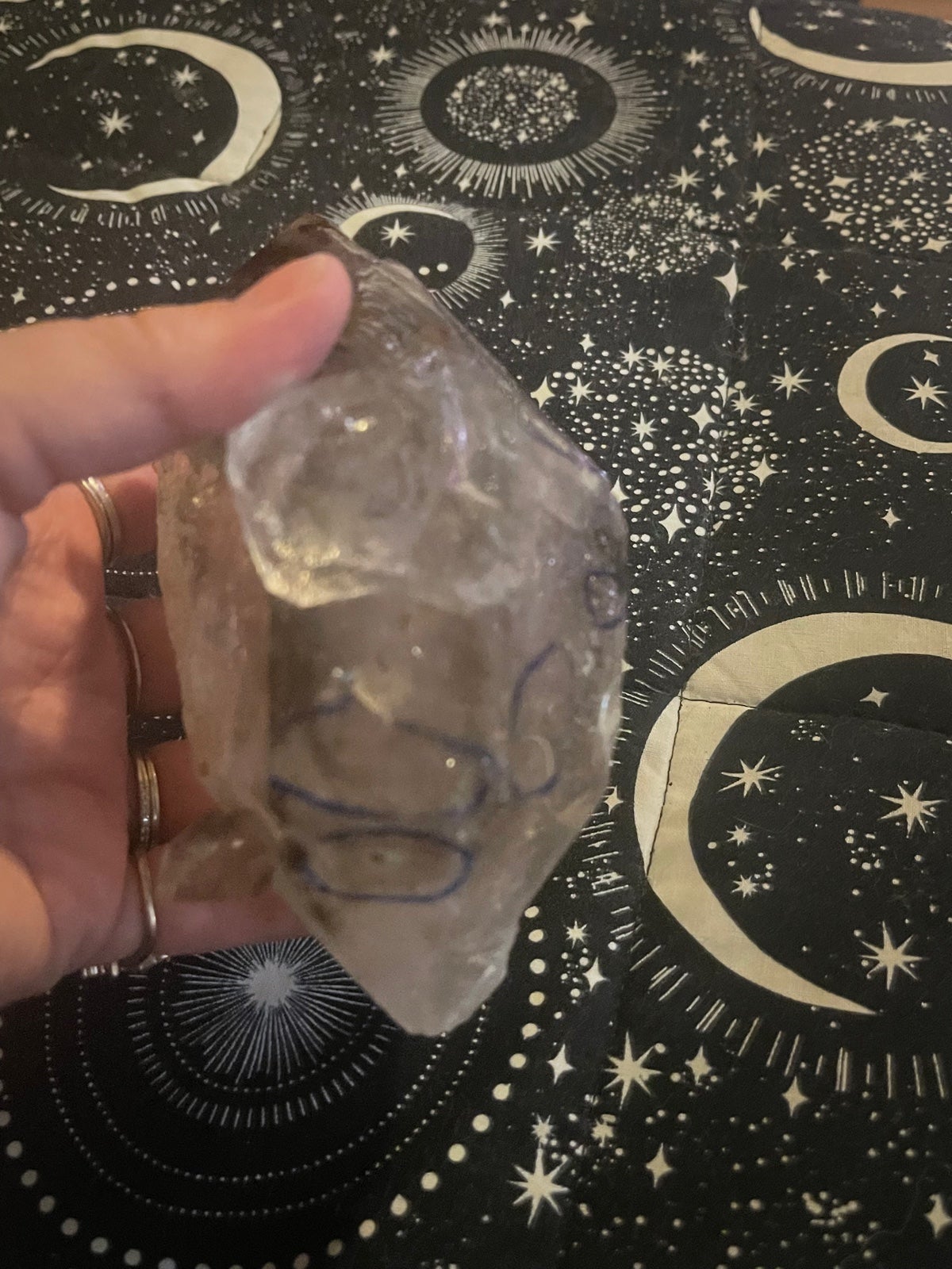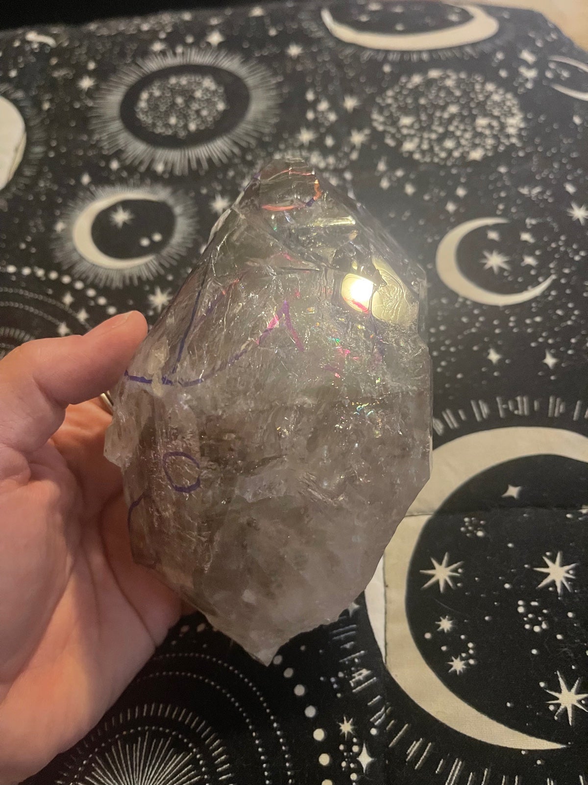 This piece is remarkable. With a large focal bubble that moves a long way. With many other enhydro and also a 3 phase inclusion. Is has a festered scepter on the side as well as baby dolphin attached crystals. A truly superb piece full of rainbows and bubbles!!