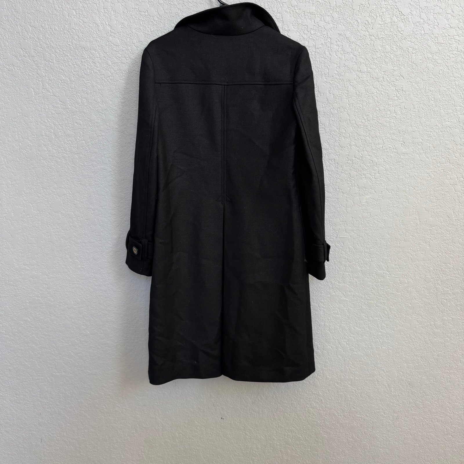 The Tory Burch Wool Blend Coat in size 6 is a stylish and cozy outerwear option for women. Made with a high-quality wool blend, this pea coat features a classic black color and a regular fit. The wool lining provides extra warmth, making it perfect for chilly weather. With its sophisticated design and reputable brand, this coat is a versatile addition to any wardrobe, perfect for everyday wear or special occasions.