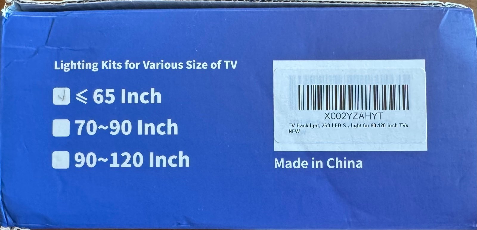 • LED strip lengths vary (options ~180”, 228”, 312”) depending on kit version (for TVs ≤ 65″ or larger)