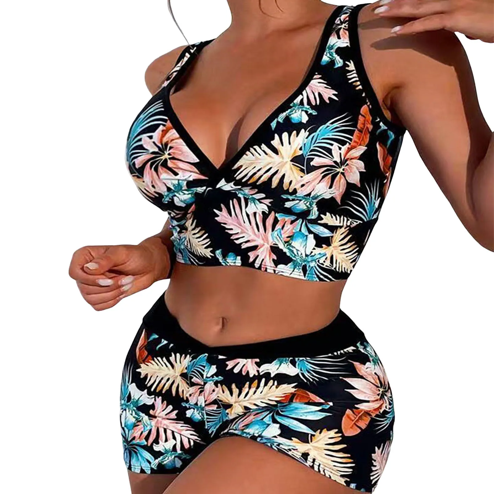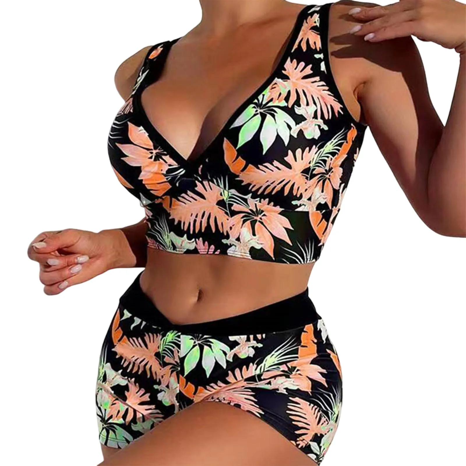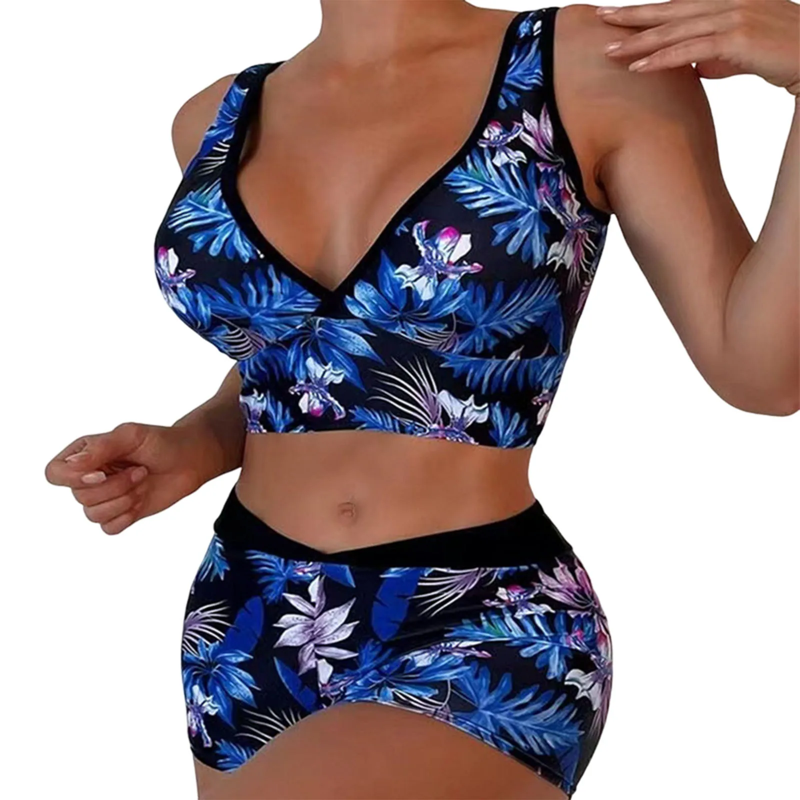 Design:Two piece swimsuits for women, high waistline design and built in cover your body well and make you look slimmer. Comfortable and soft padded Bra gather breast well, sexy mesh round neck design show the curve of the chest, sexy, elegant and attractive.Exquisite printing pattern design, sexy and integration, design highlights proud of the body, soft and comfortable good.