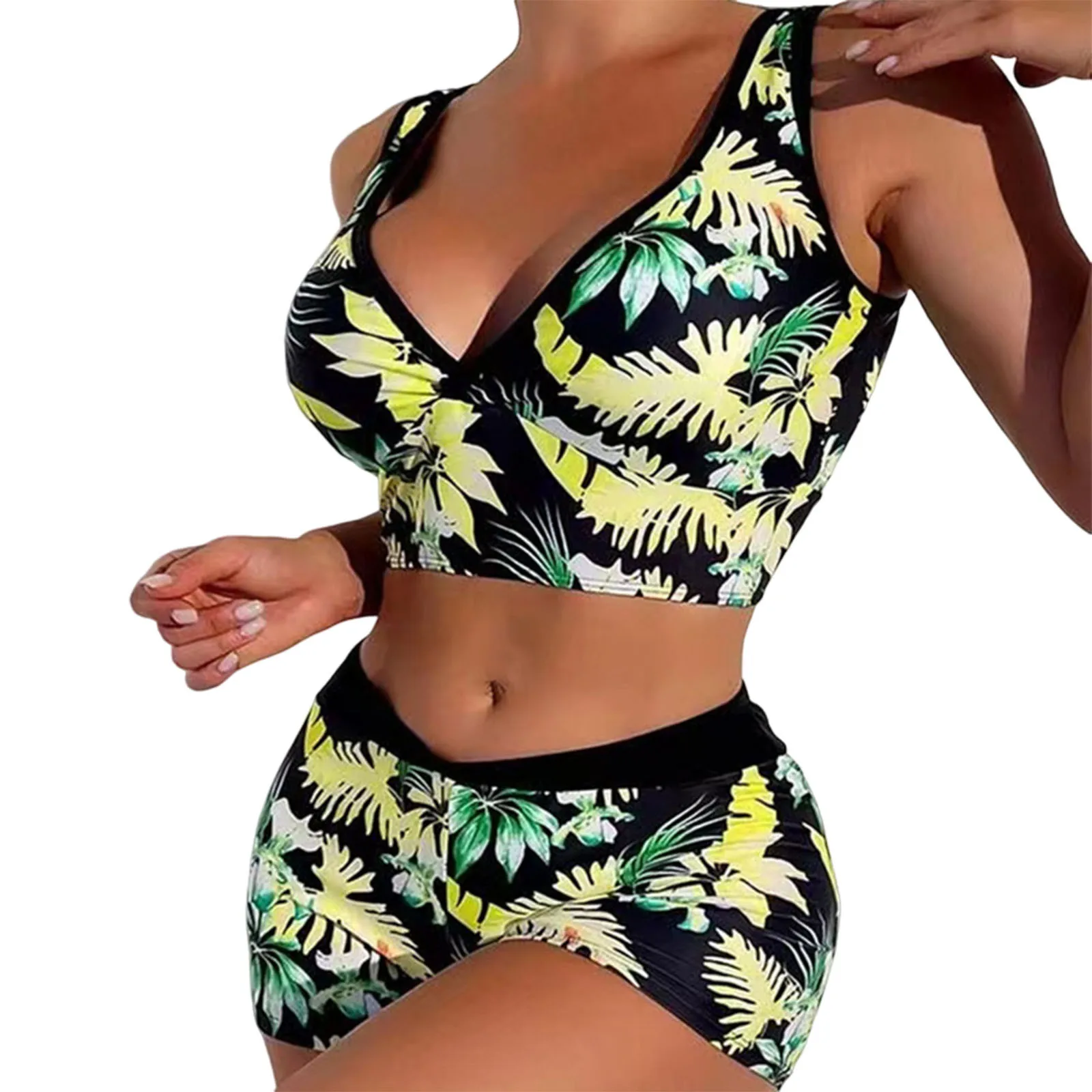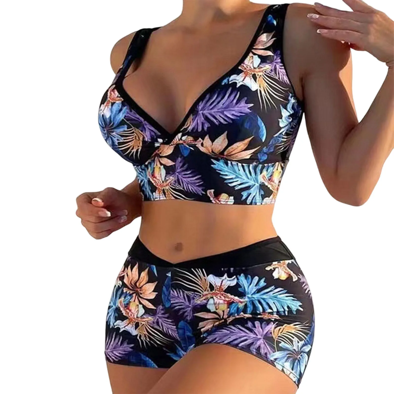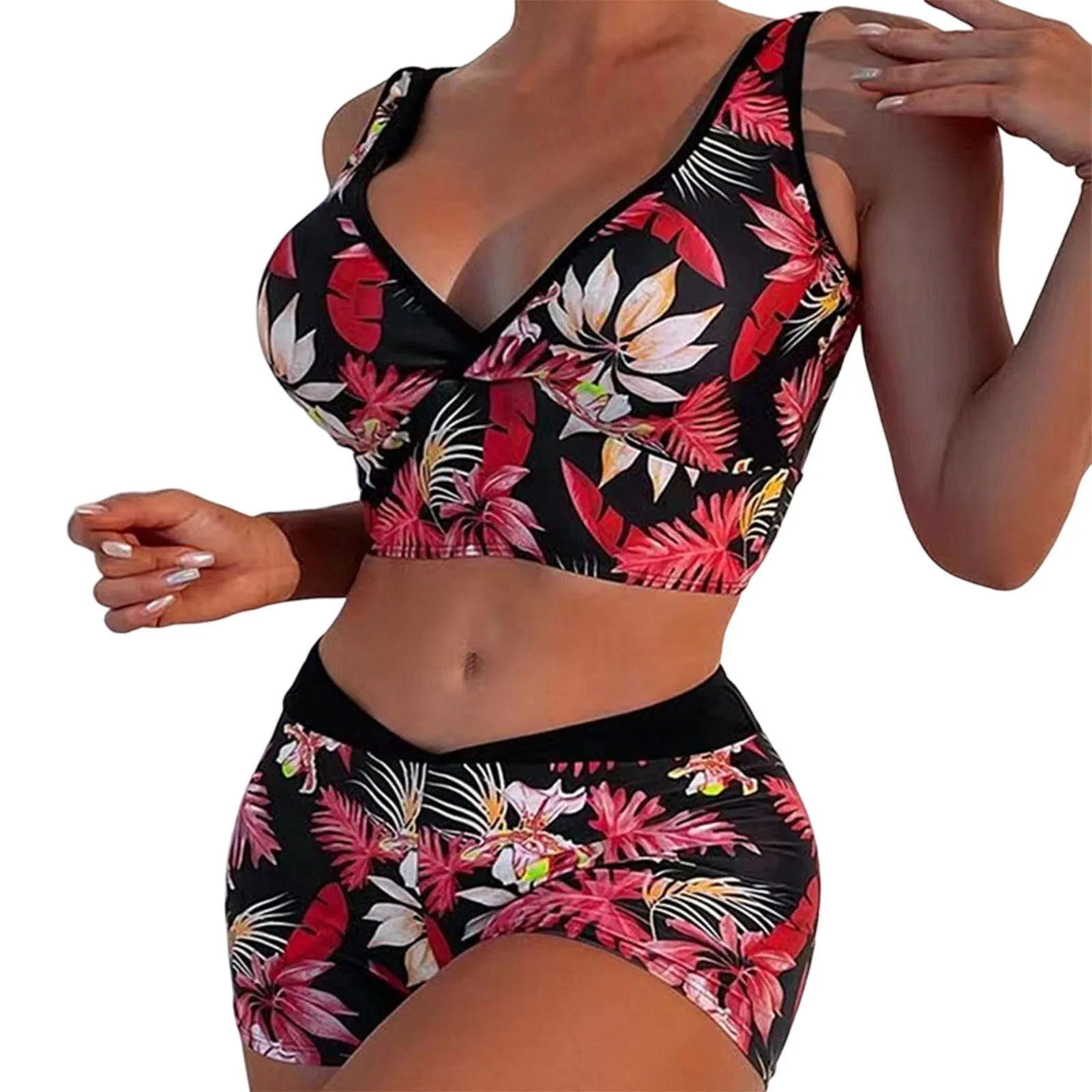 Design:Two piece swimsuits for women, high waistline design and built in cover your body well and make you look slimmer. Comfortable and soft padded Bra gather breast well, sexy mesh round neck design show the curve of the chest, sexy, elegant and attractive.Exquisite printing pattern design, sexy and integration, design highlights proud of the body, soft and comfortable good.
